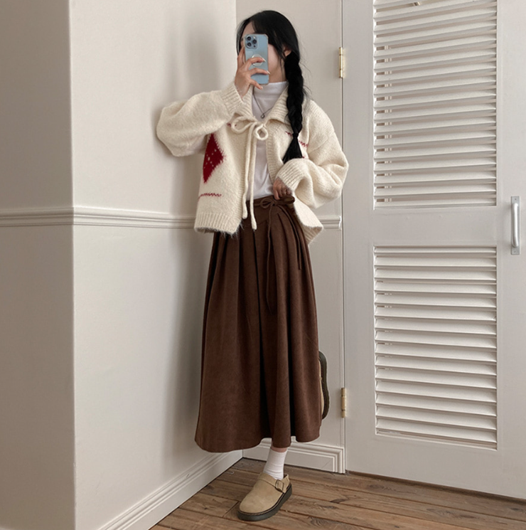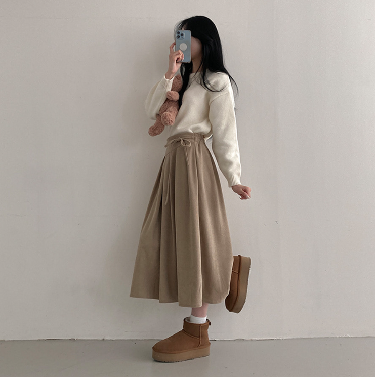 (•‾⌣‾•)燈芯絨長裙好適合秋冬天氣❤️長裙更有日系感覺💕