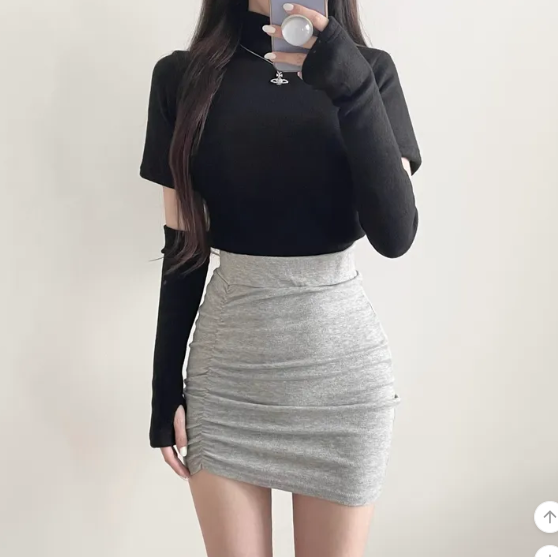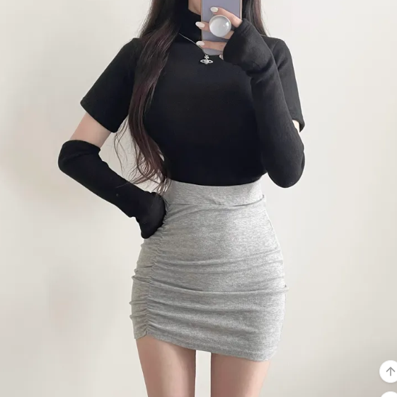 (•‾⌣‾•)設計比較獨特既套裝❤️短袖配上手套唔會容易撞衫💕