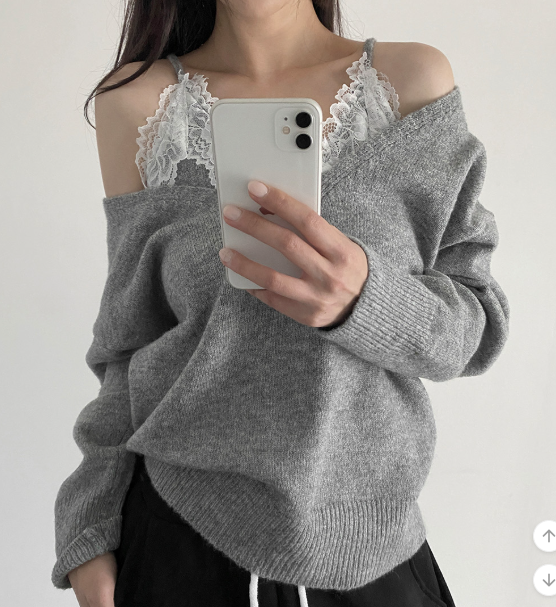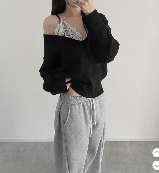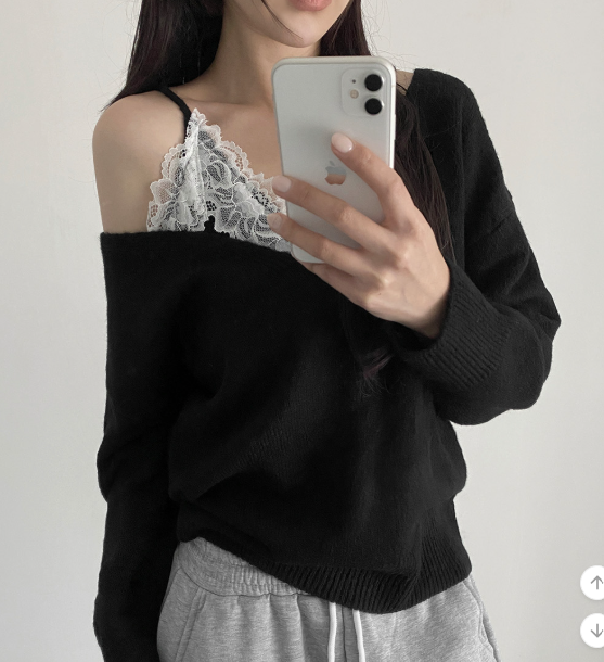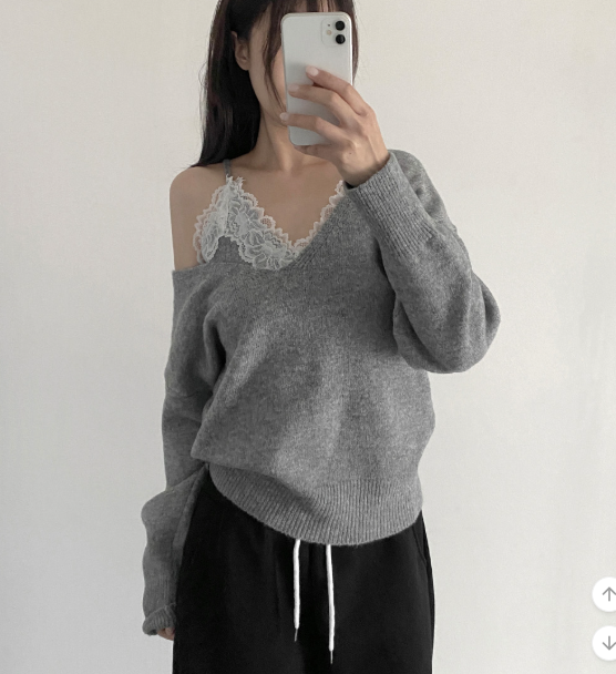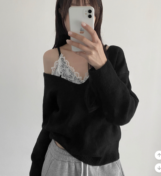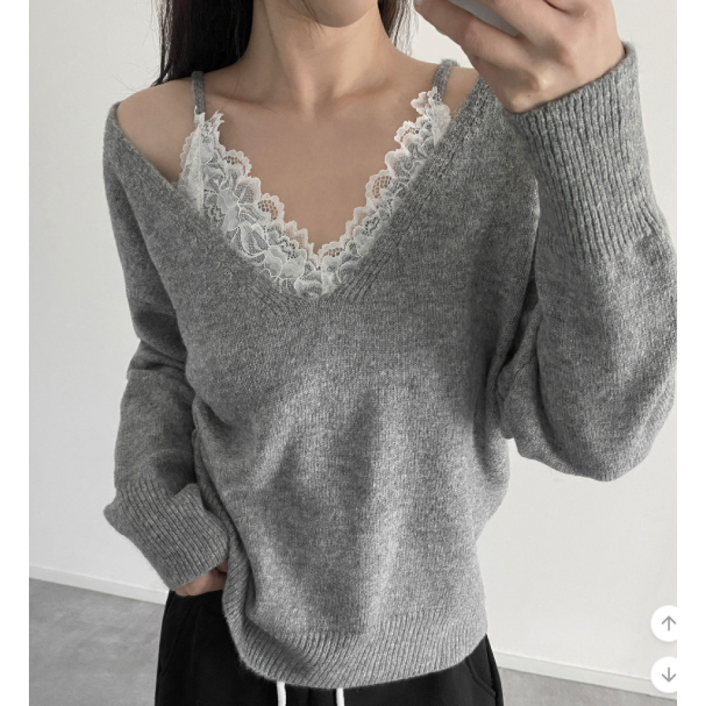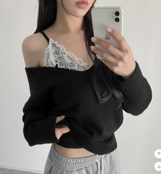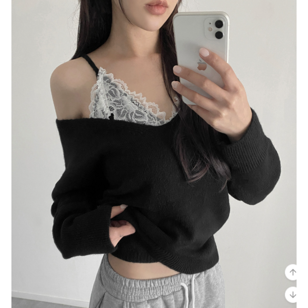 (•‾⌣‾•)蕾絲配針織設計好高級❤️配短褲或短裙好似著One piece出街約會好適合💕