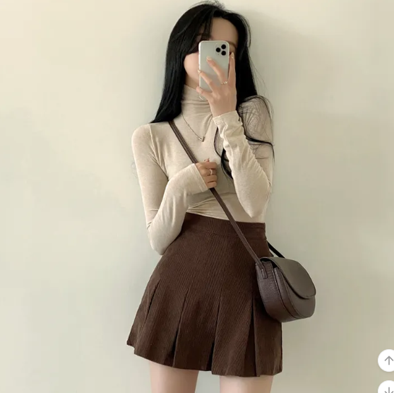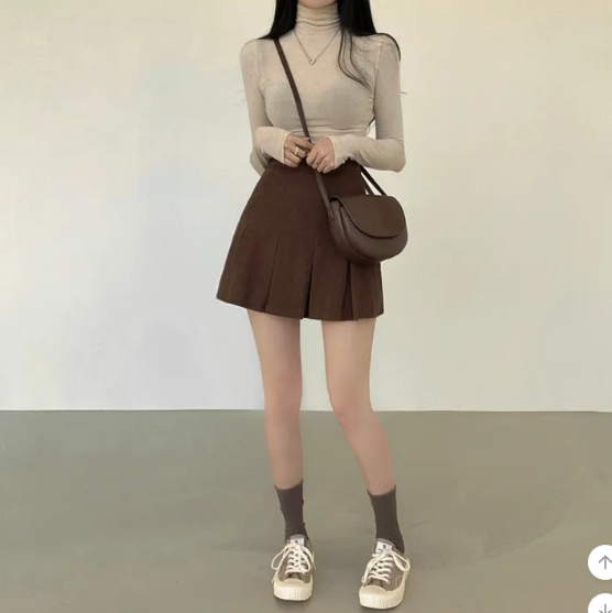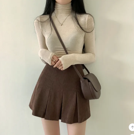 (•‾⌣‾•)燈芯絨百褶裙配上大地色經典既秋冬配搭💕