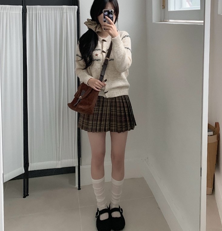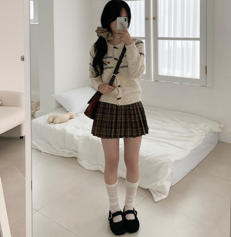(•‾⌣‾•)格紋褶皺裙經典配搭❤️上身點襯都好睇💕