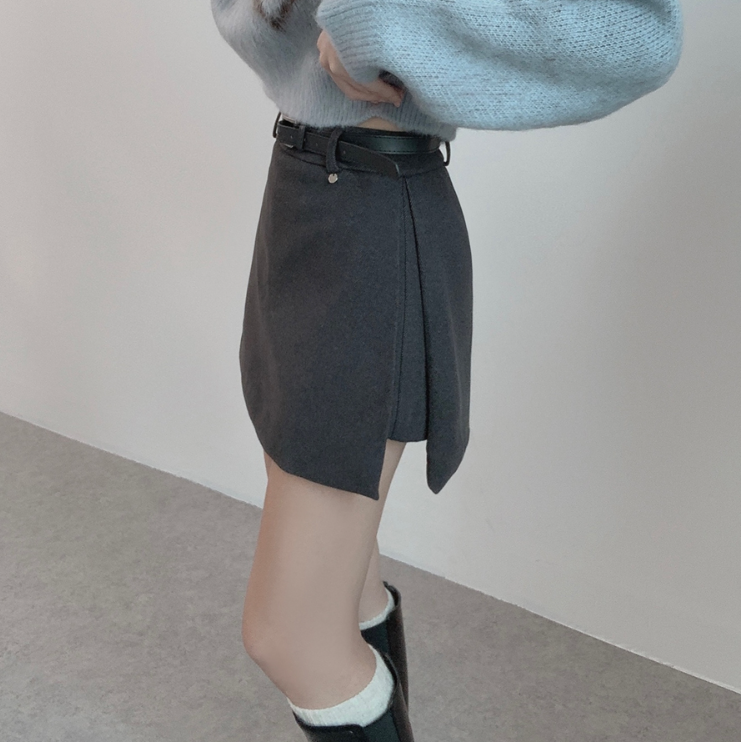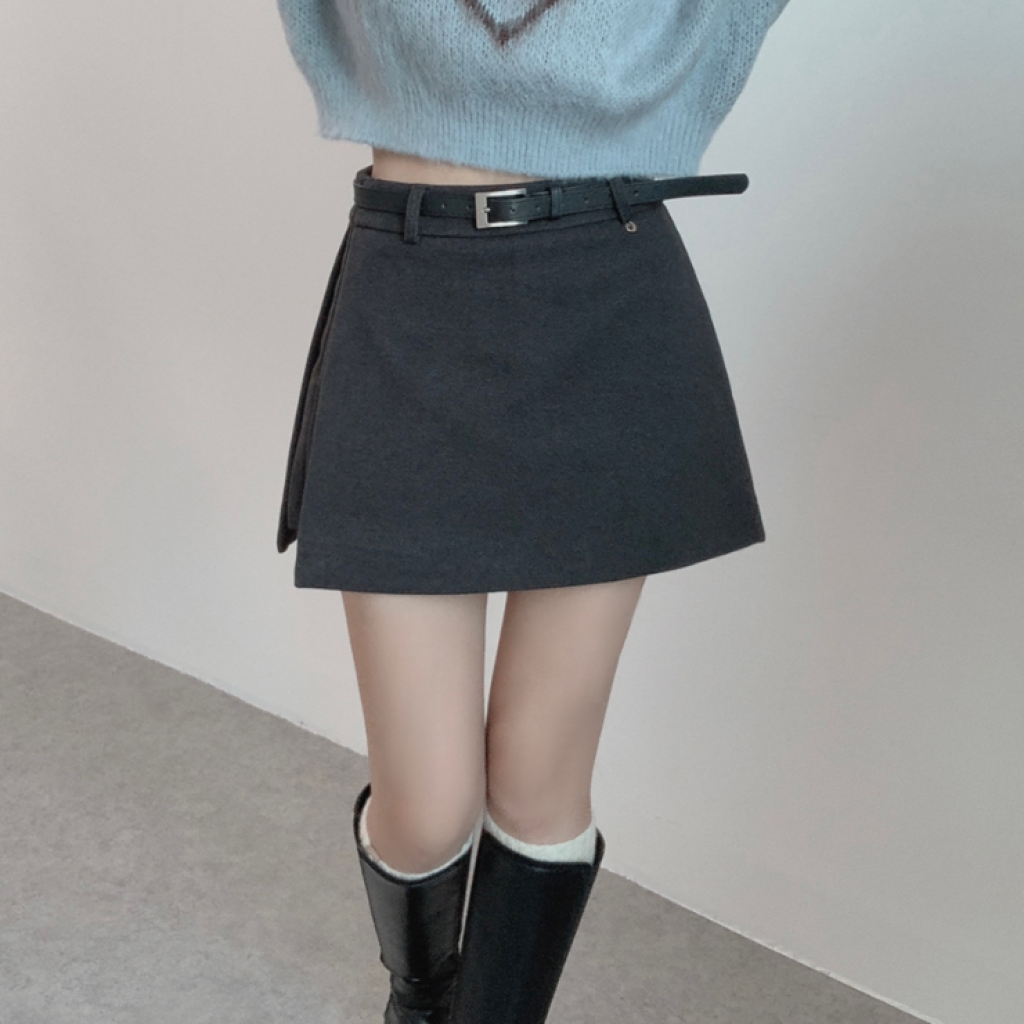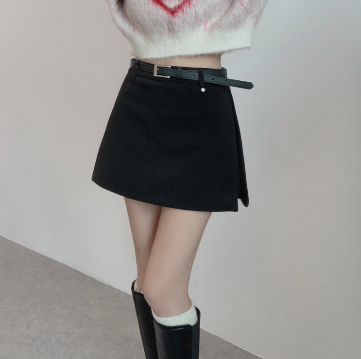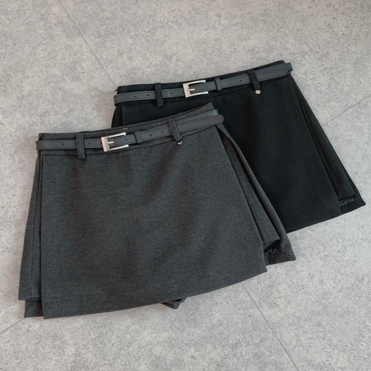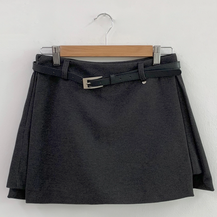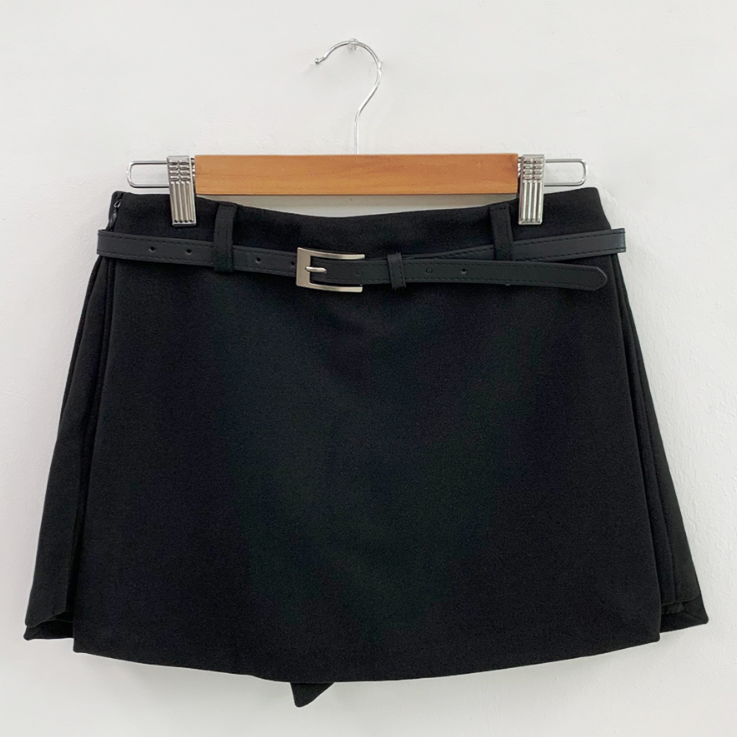 側開衩半身裙腰帶套裝【2色入】