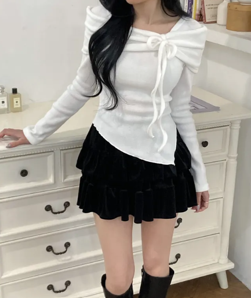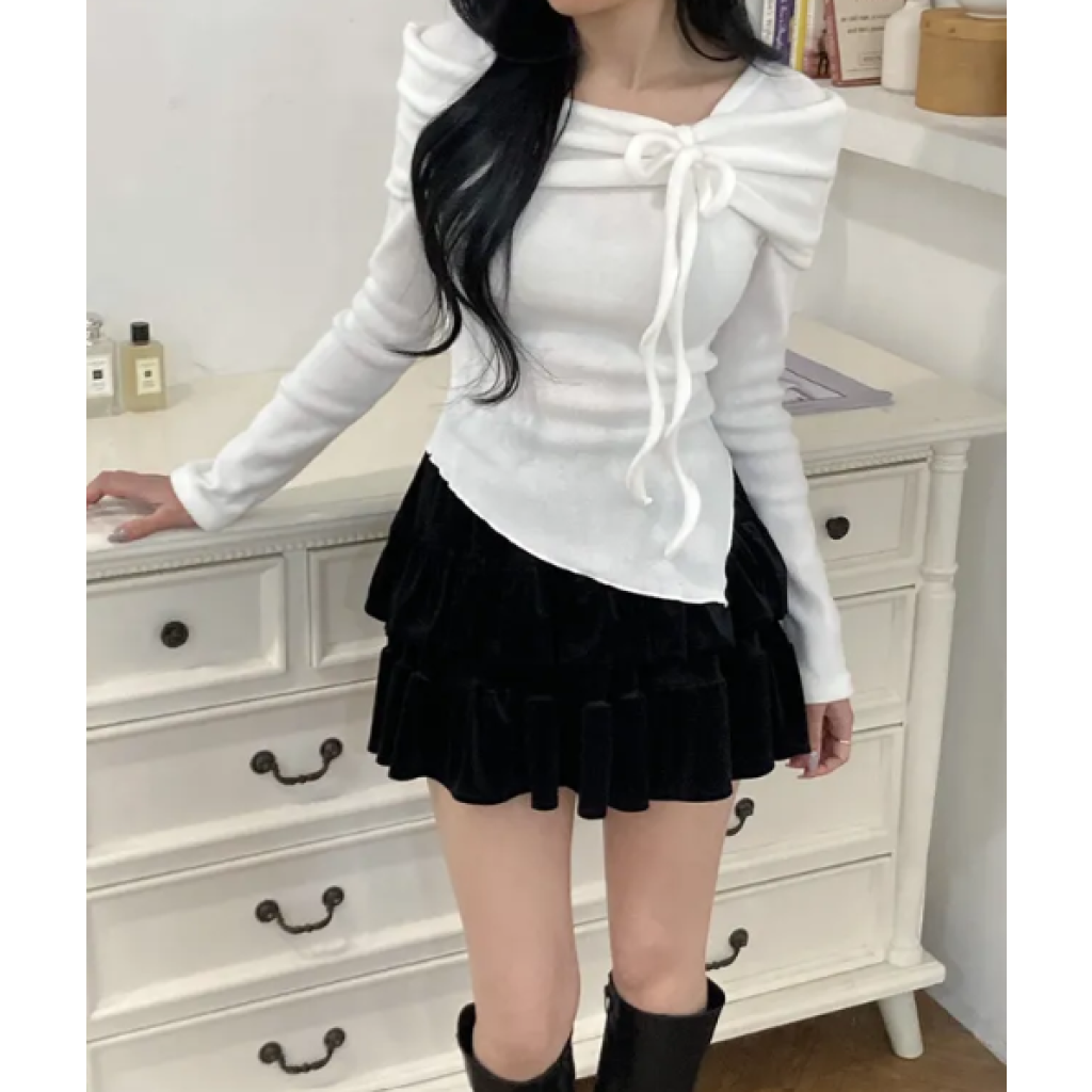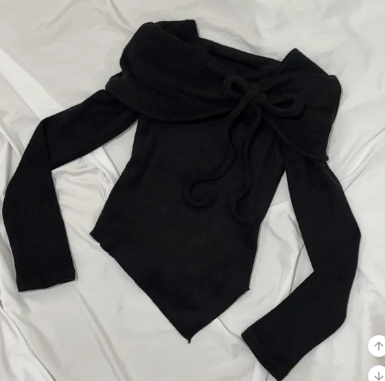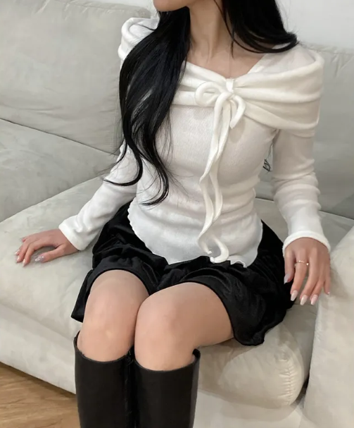 (•‾⌣‾•)露肩蝴蝶結長袖❤️好溫柔好適合節日著出街💕