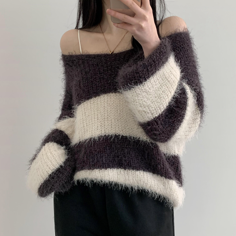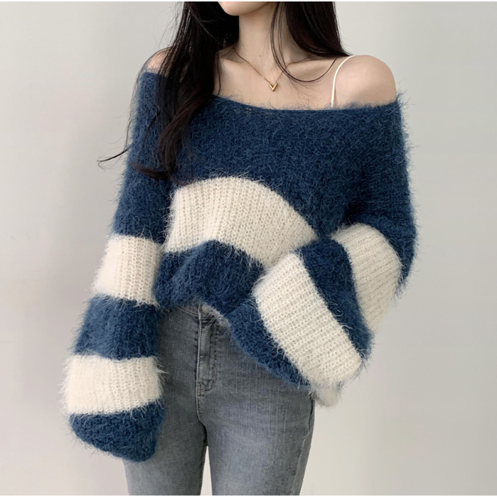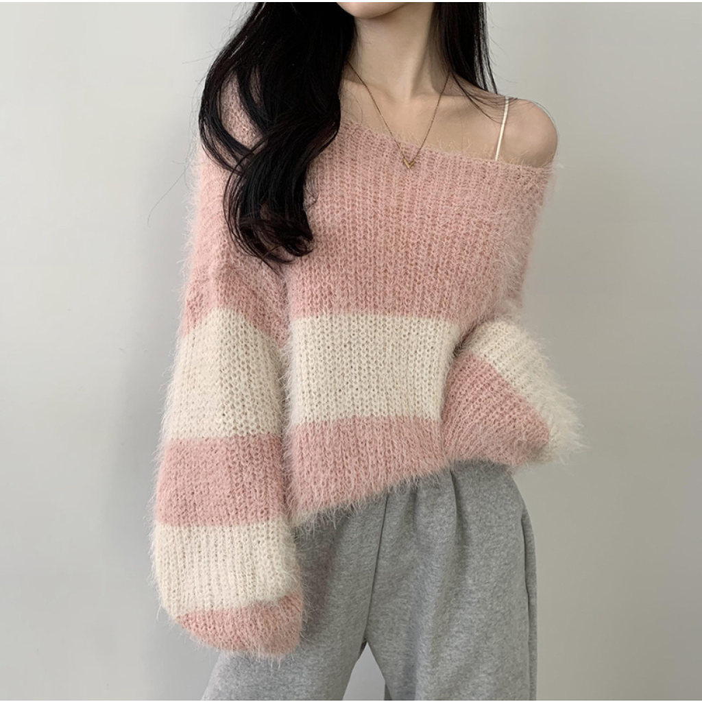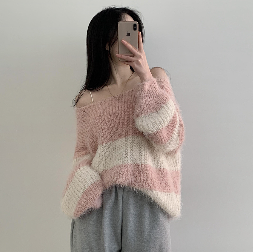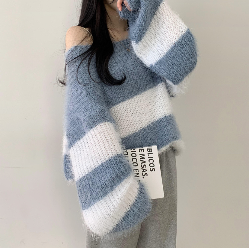 寬鬆間條針織衫【6色入】