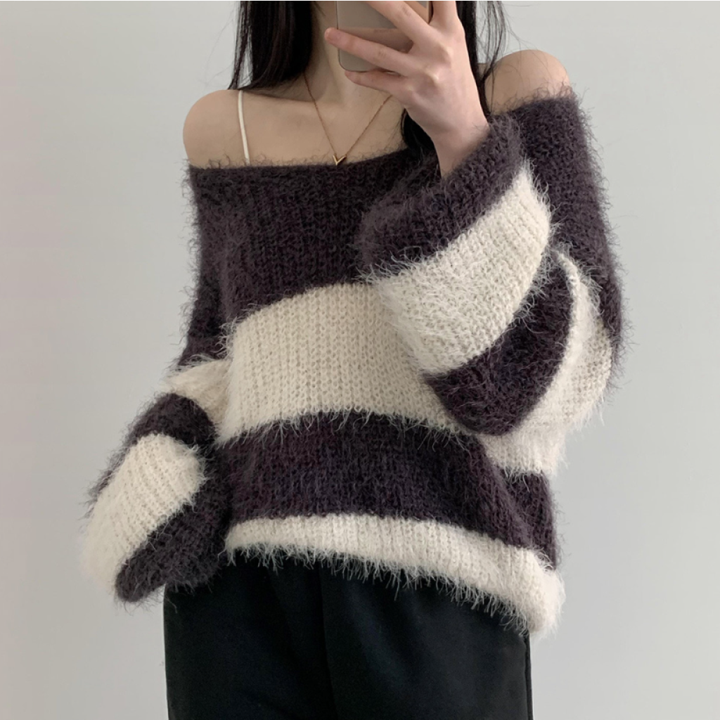 (•‾⌣‾•)間條拼色好溫柔❤️毛毛質地好適合秋冬天氣💕