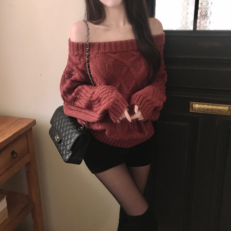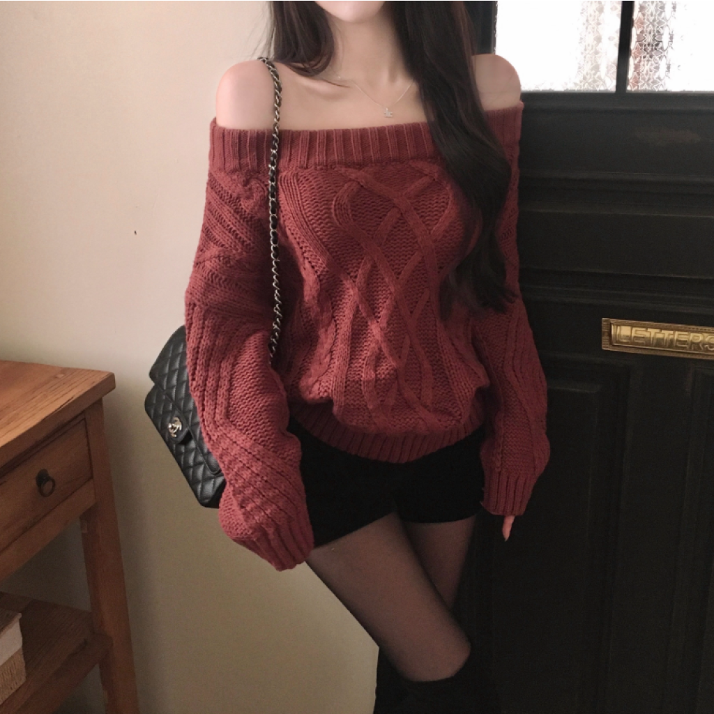 (•‾⌣‾•)麻花扭結一字肩針織衫❤️顯得高貴又有魅力好適合呢排天氣唔太凍好舒服💕