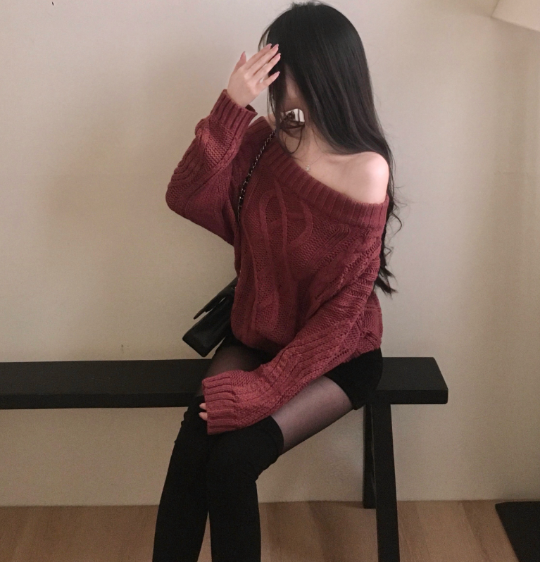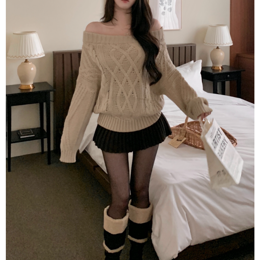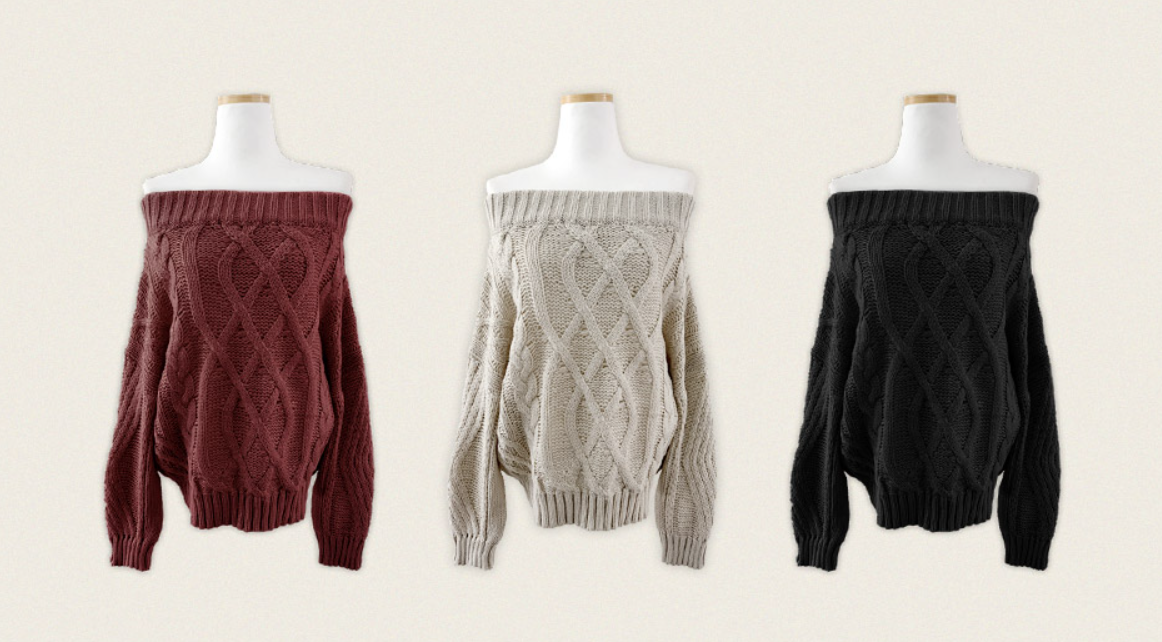 露肩扭結麻花針織衫【3色入】