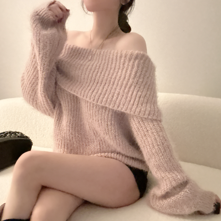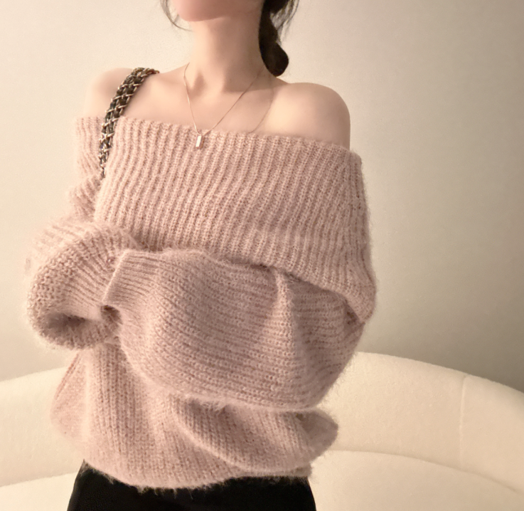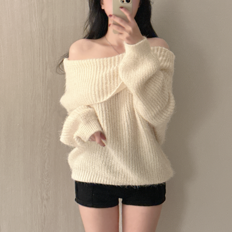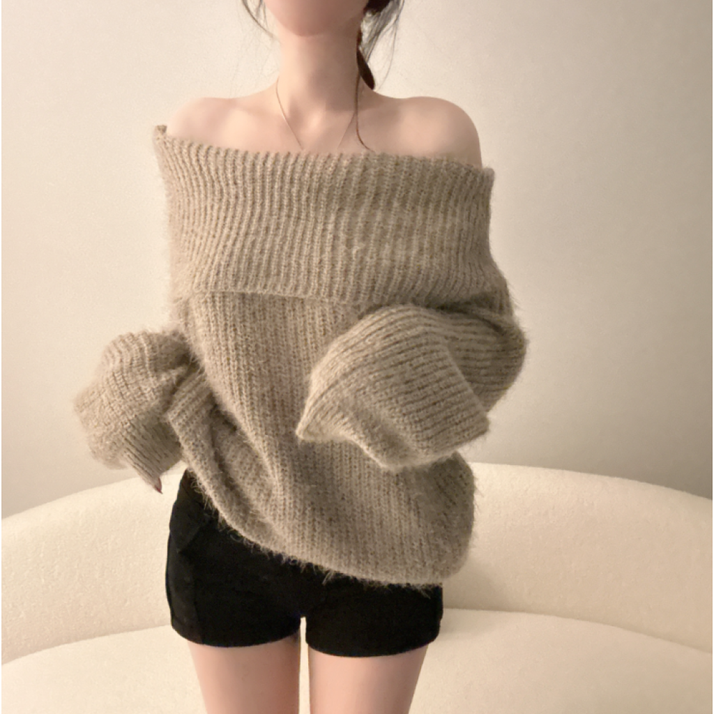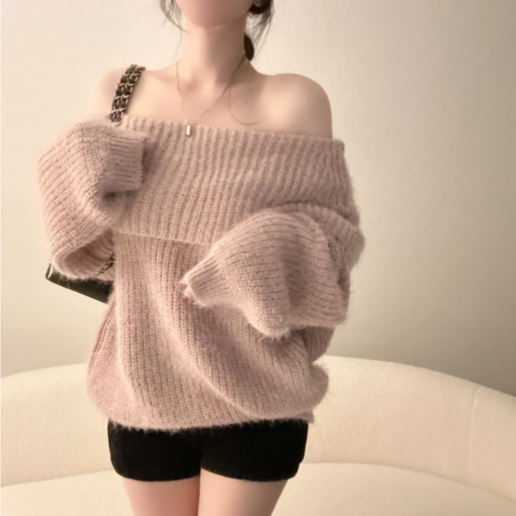 露肩寬鬆安哥拉針織長袖【5色入】