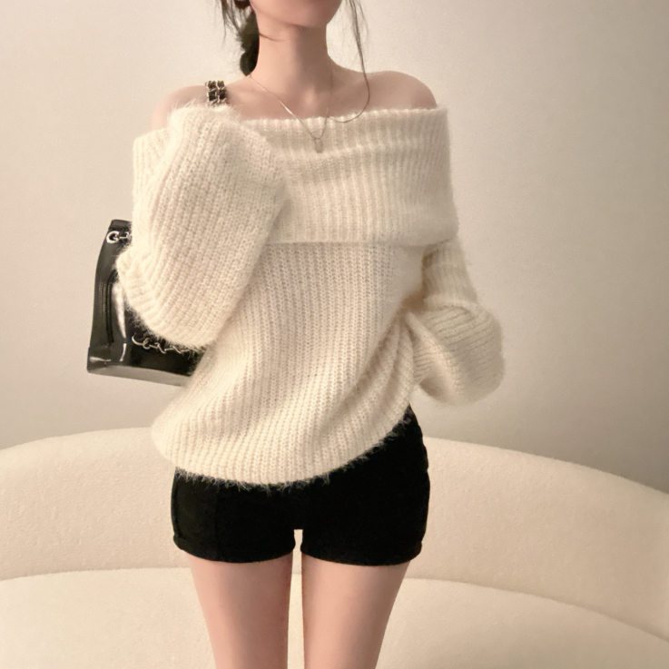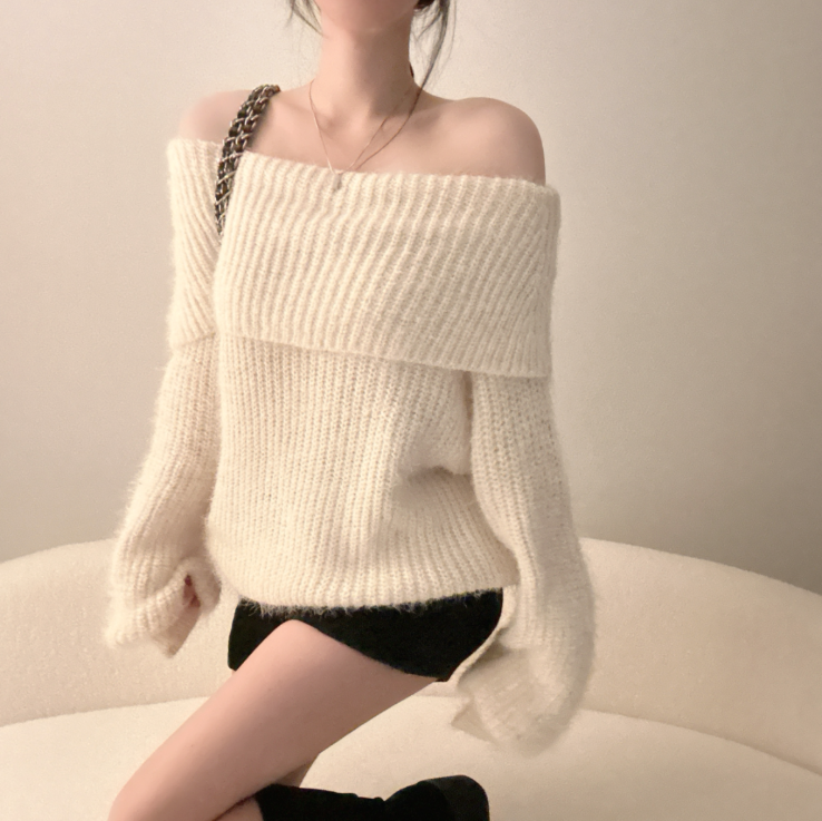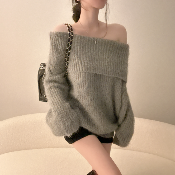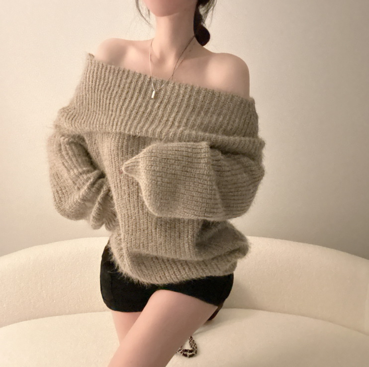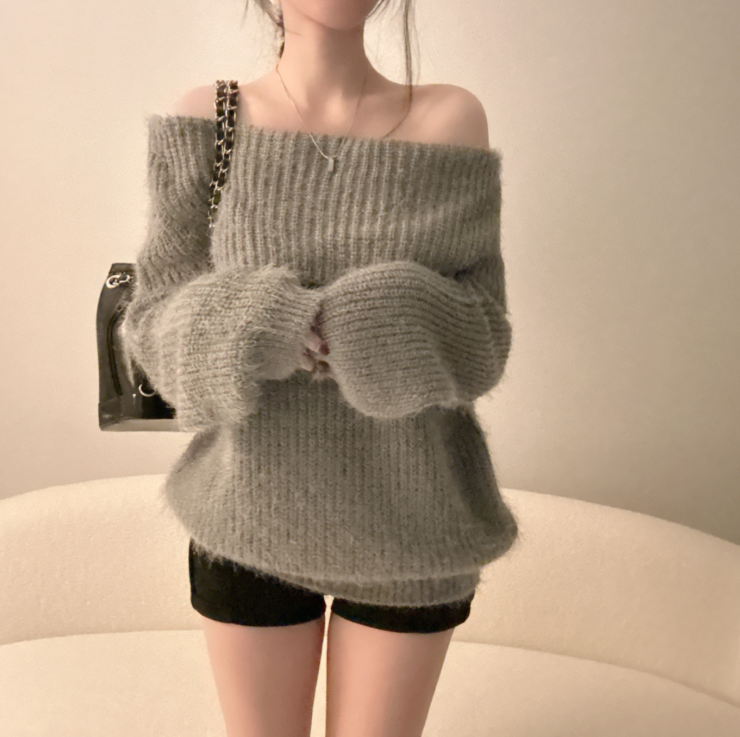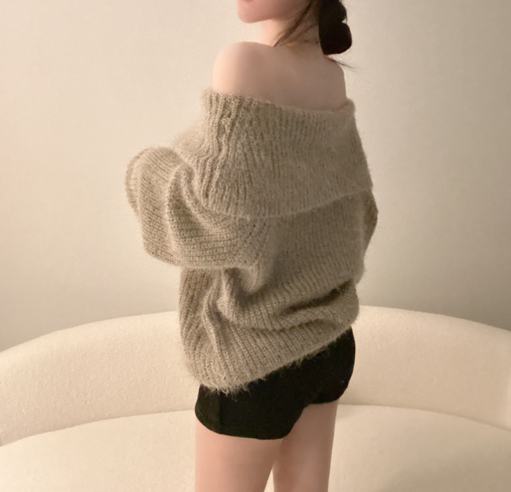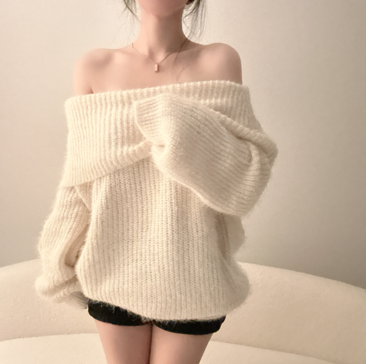 露肩寬鬆安哥拉針織長袖【5色入】