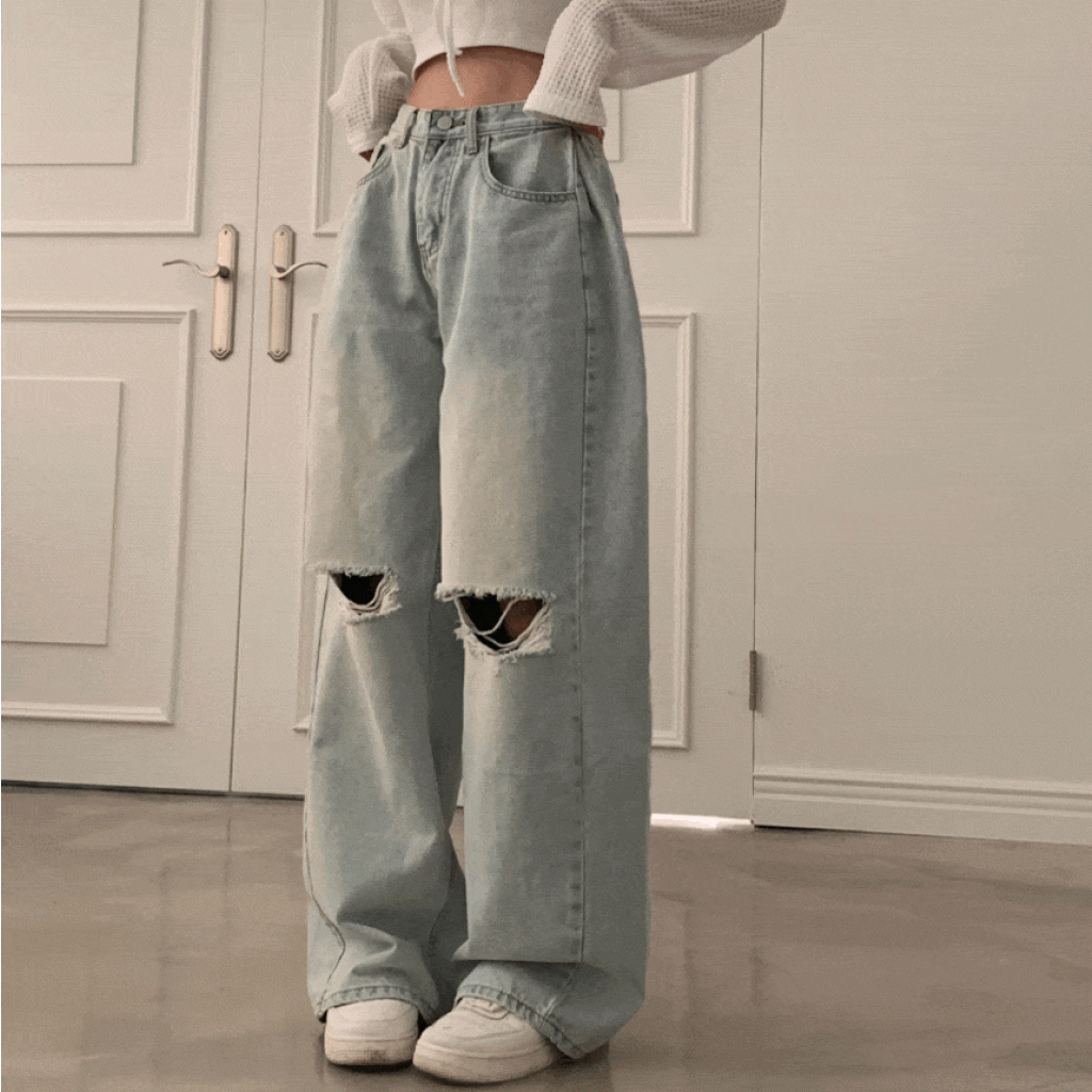 ヽ( ^ω^ ゞ )休閒既闊腿破洞牛仔褲❤牛仔褲係萬能百搭單品衣櫃必備一條呀😍