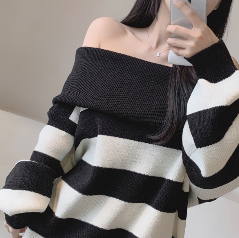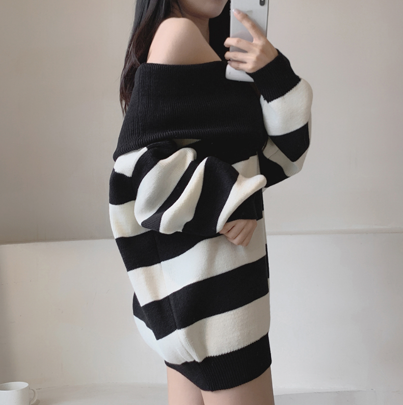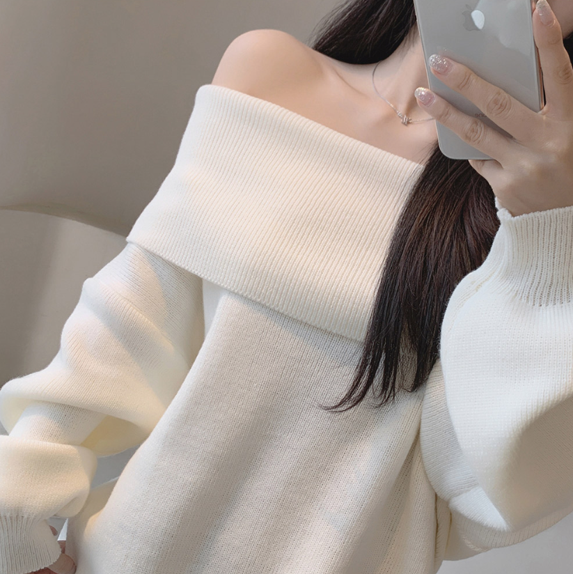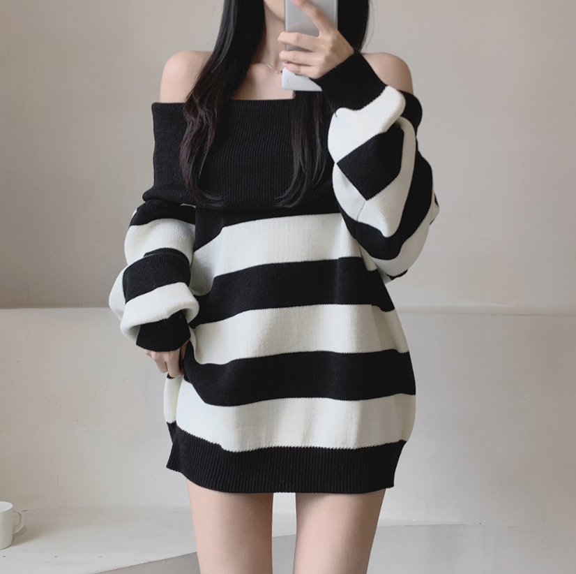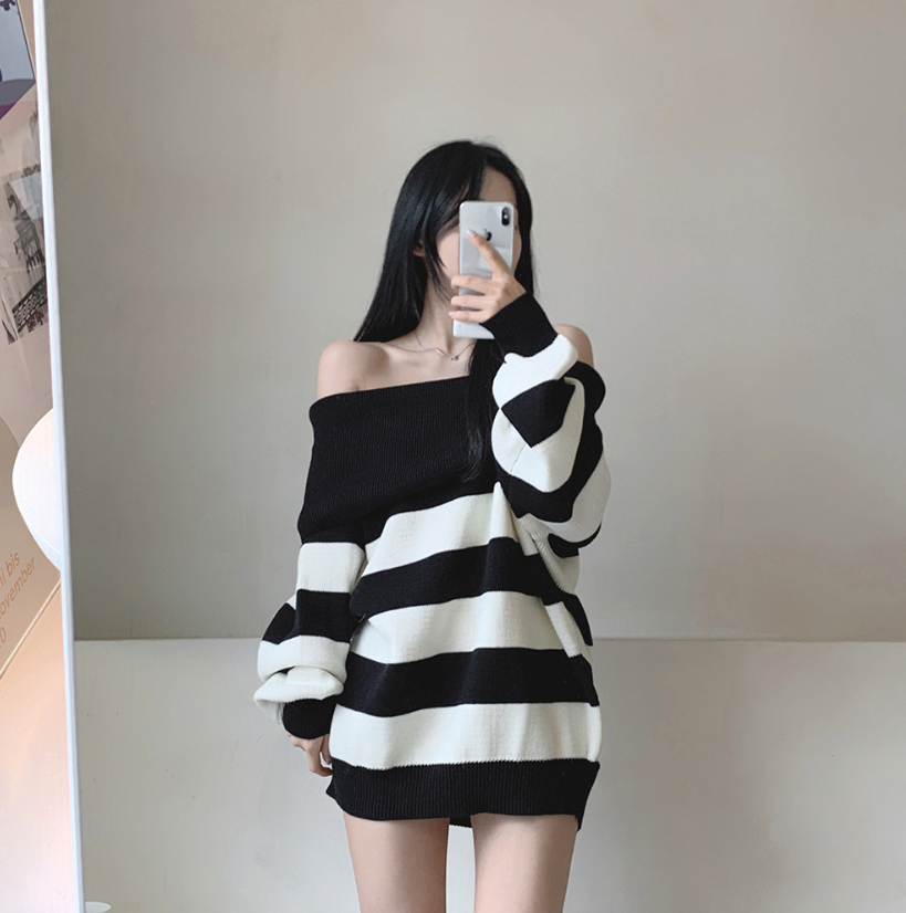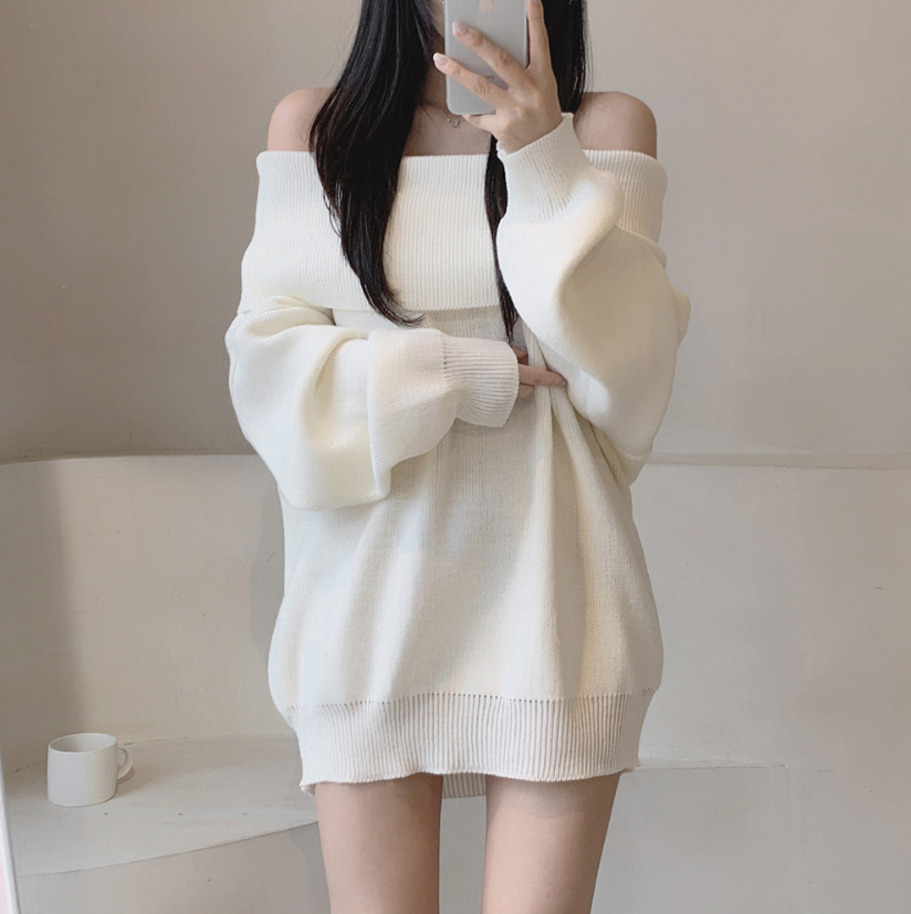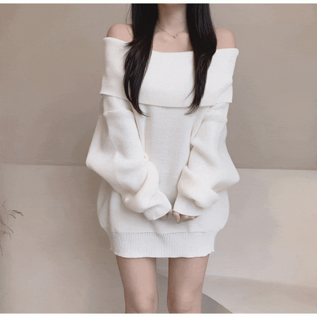 (●ˇ∀ˇ●)好溫柔既一字肩針織上衣✨可當one piece簡簡單單又出得街😍