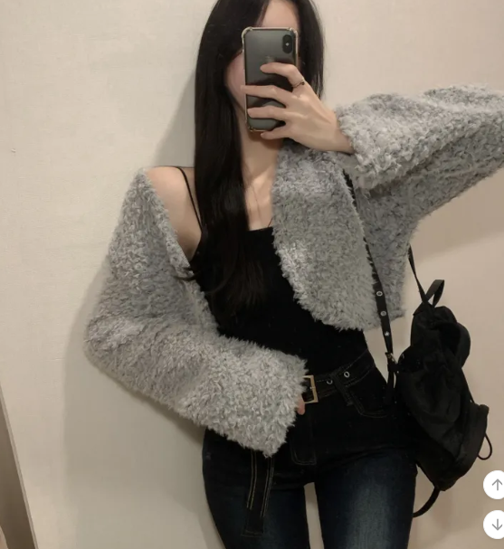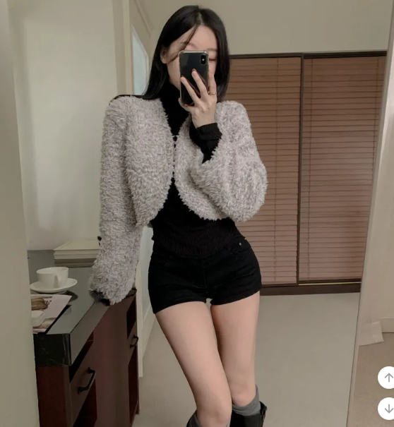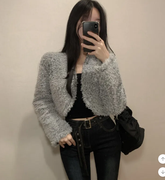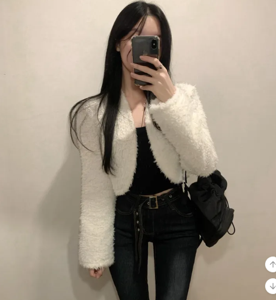 (•‾⌣‾•)短款毛毛外套💕唔會太厚顯得臃腫❤️