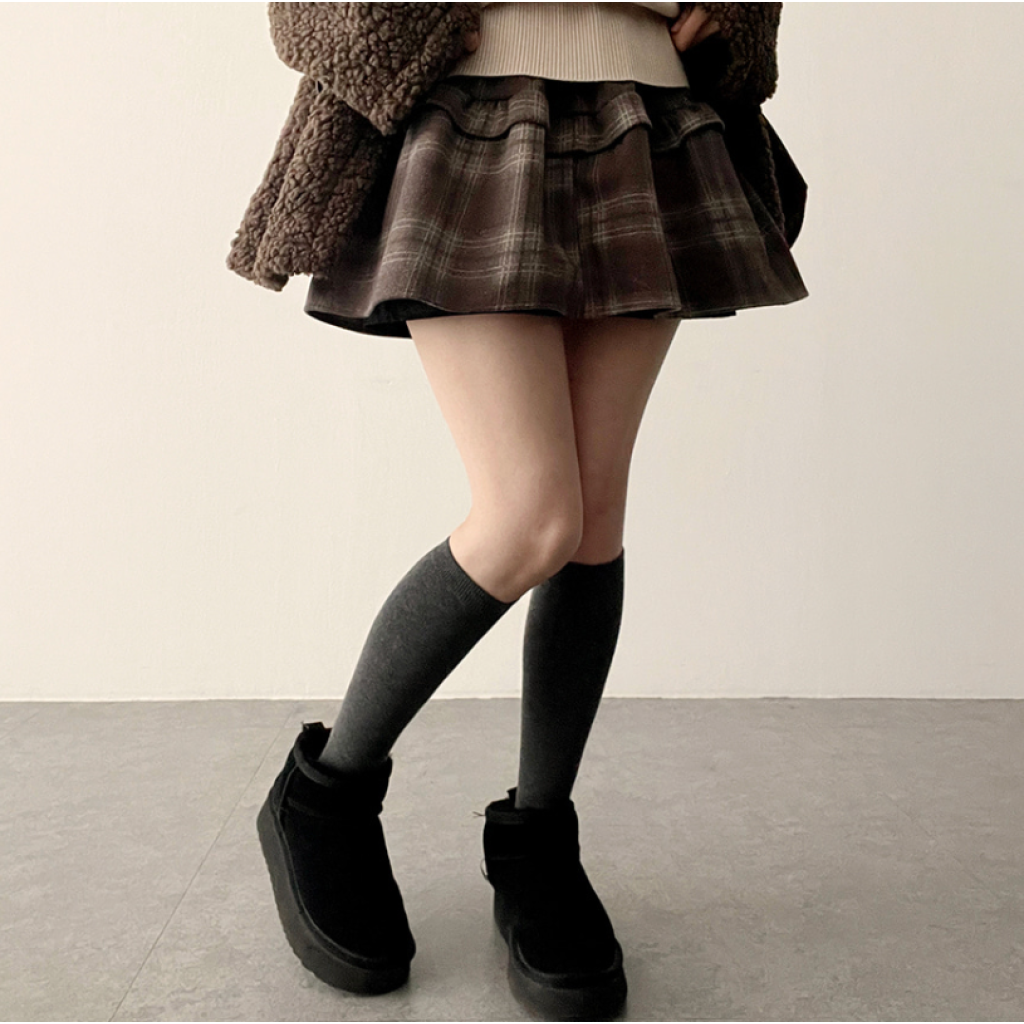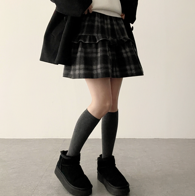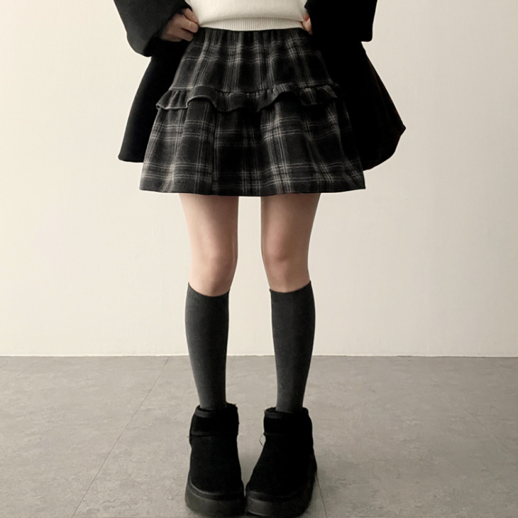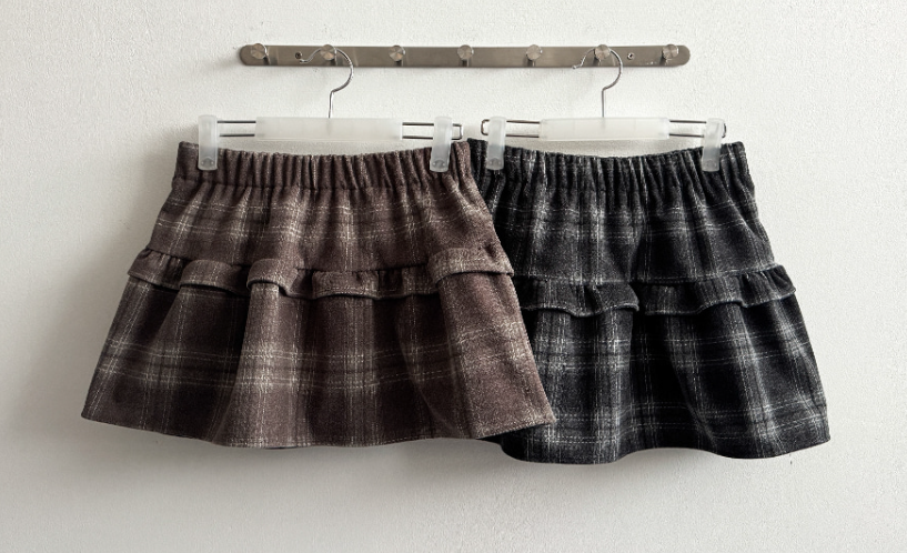 格仔橡筋腰喇叭裙【2色入】