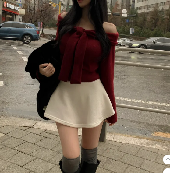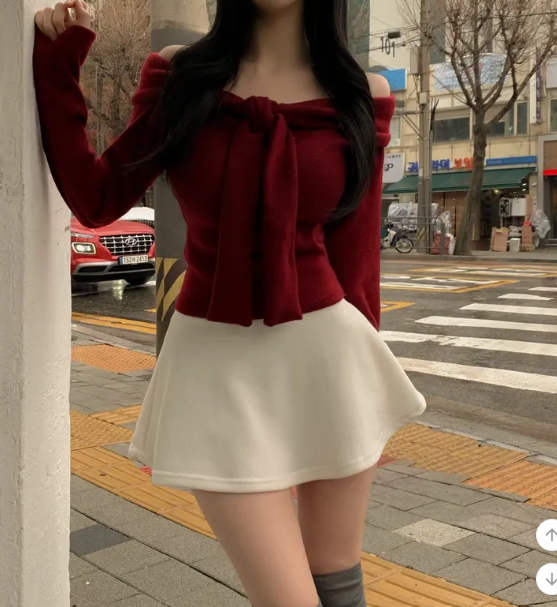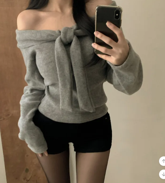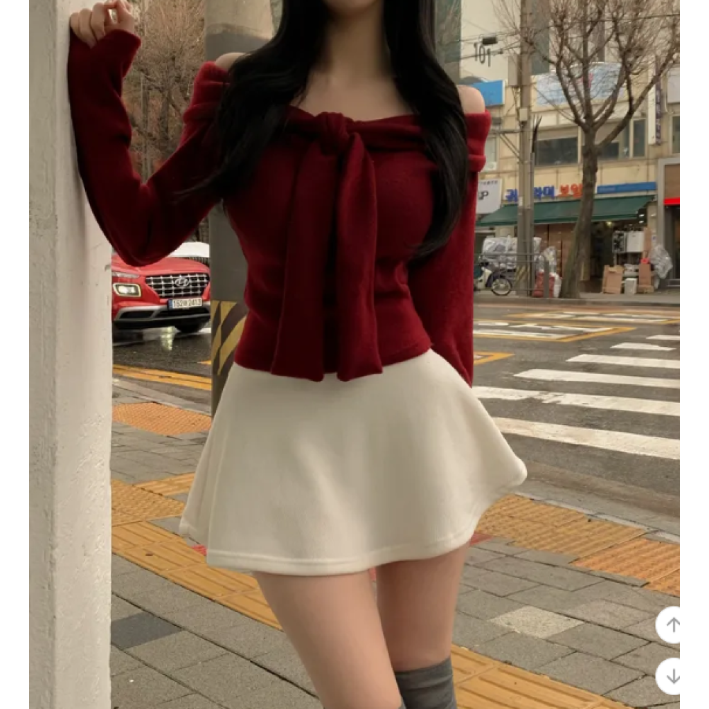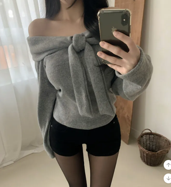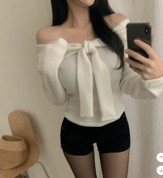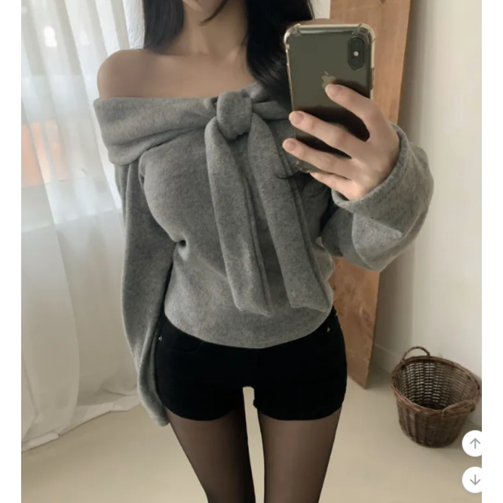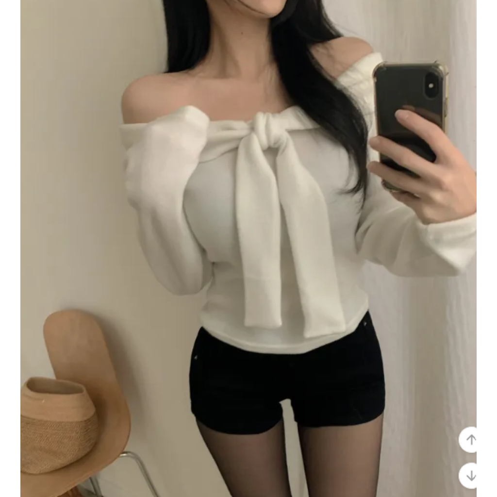 絨面緞帶露肩T恤【4色入】