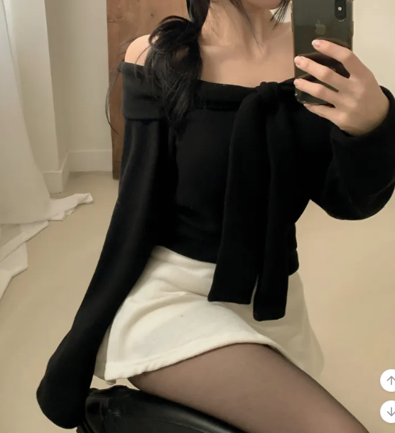 (•‾⌣‾•)露肩設計加上拼接假披肩💕著一件已經有疊穿效果❤️