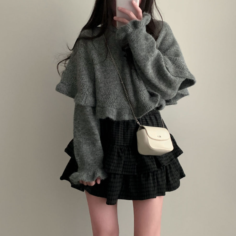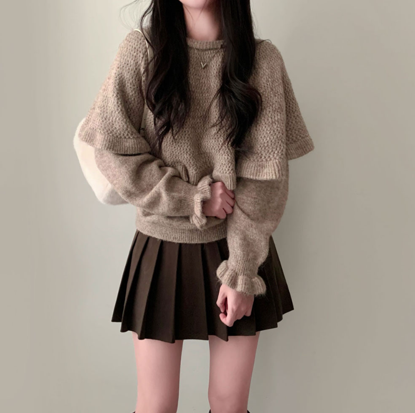 (•‾⌣‾•)呢款披肩針織套裝可以分拆穿著💕披肩部分又可以當半身裙針織裙❤️