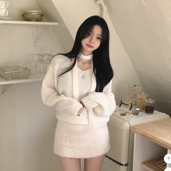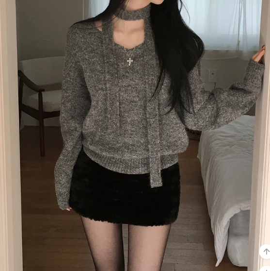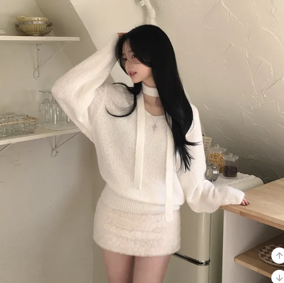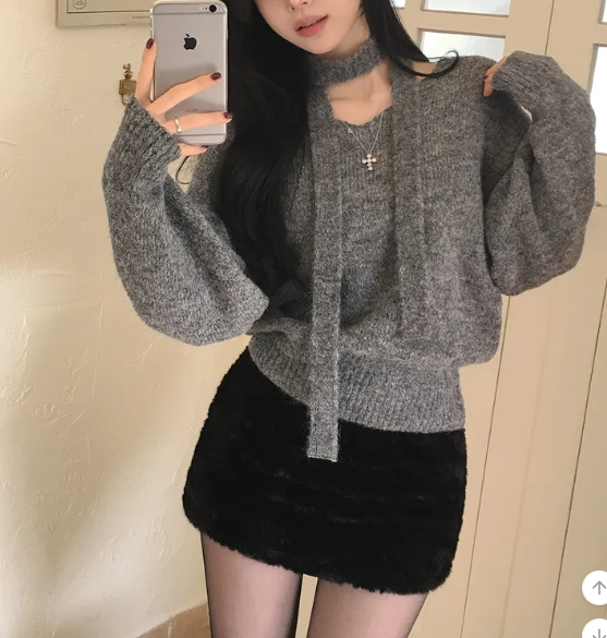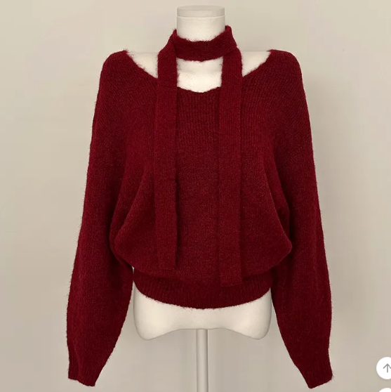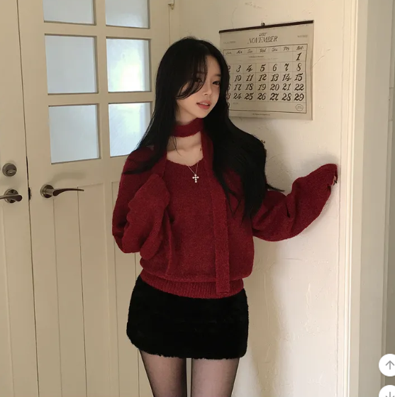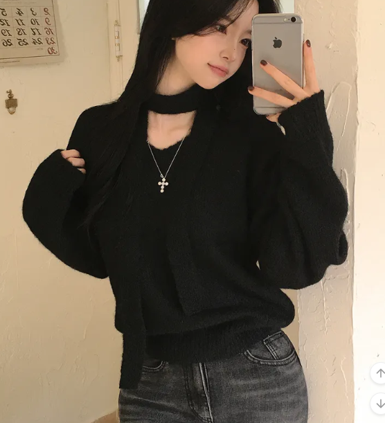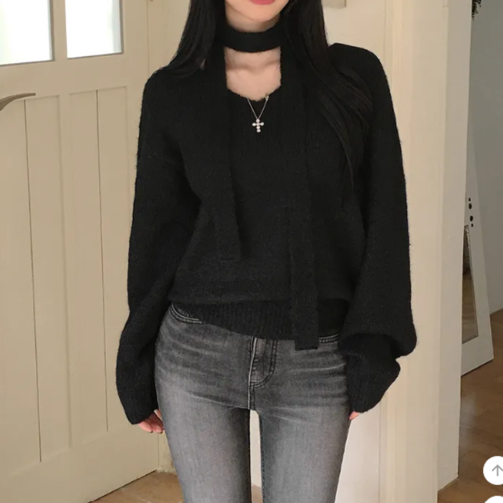 (•‾⌣‾•)柔軟針織衫配小圍巾💕下身配裙或褲都好好睇❤️