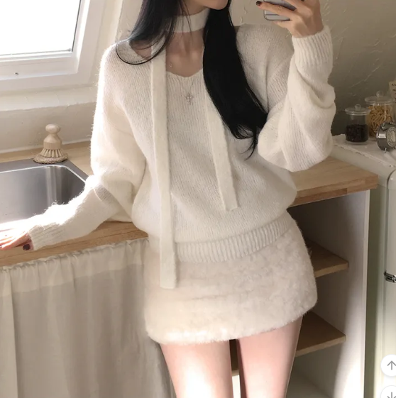 (•‾⌣‾•)柔軟毛毛半身裙💕毛毛質地好適合秋冬季節❤️約會出街岩曬
