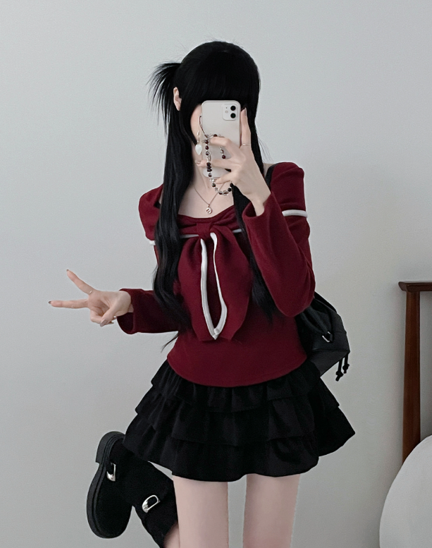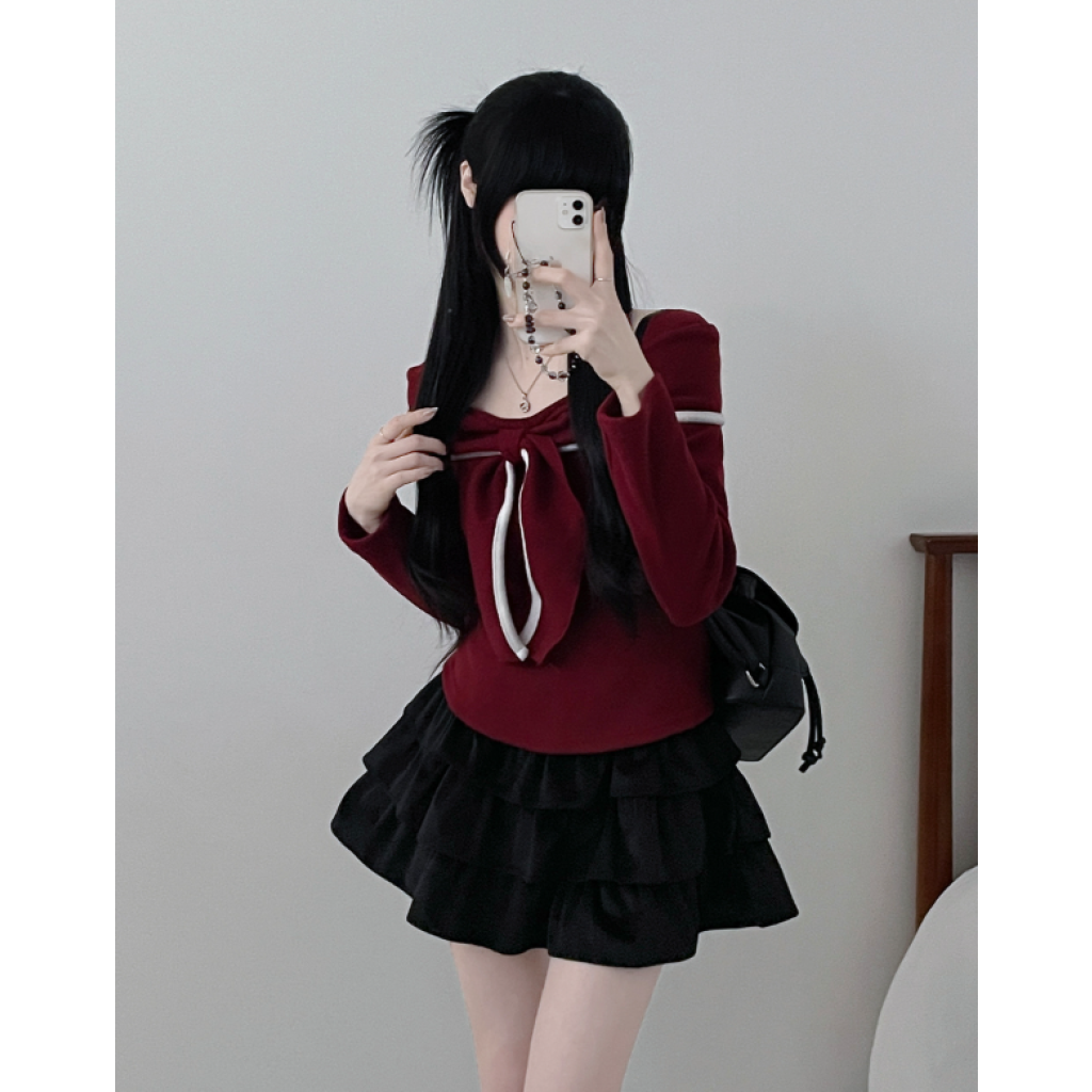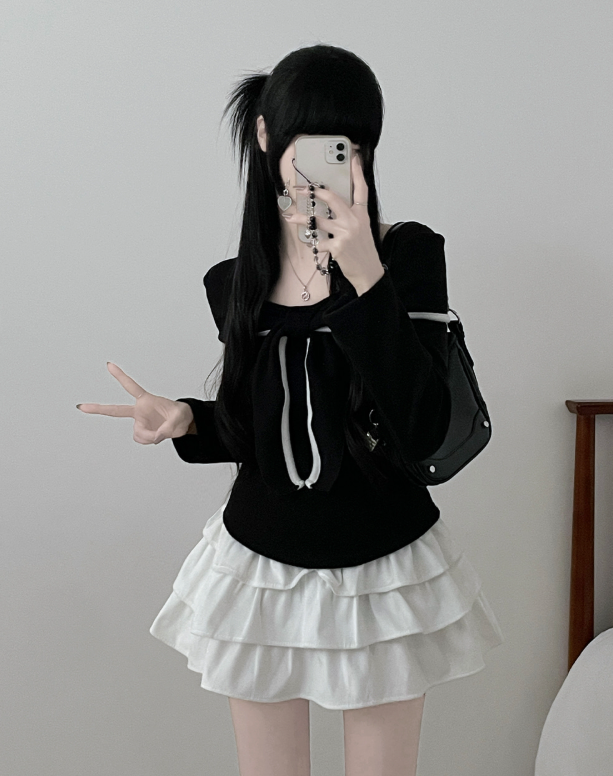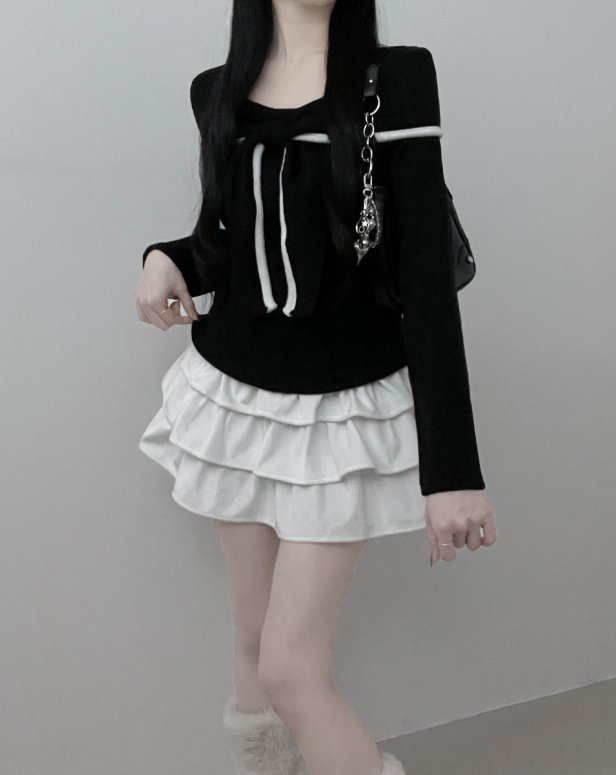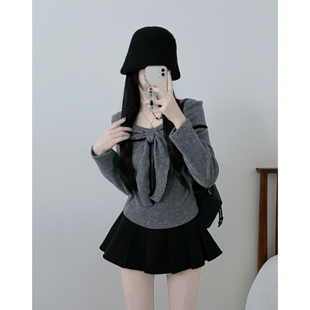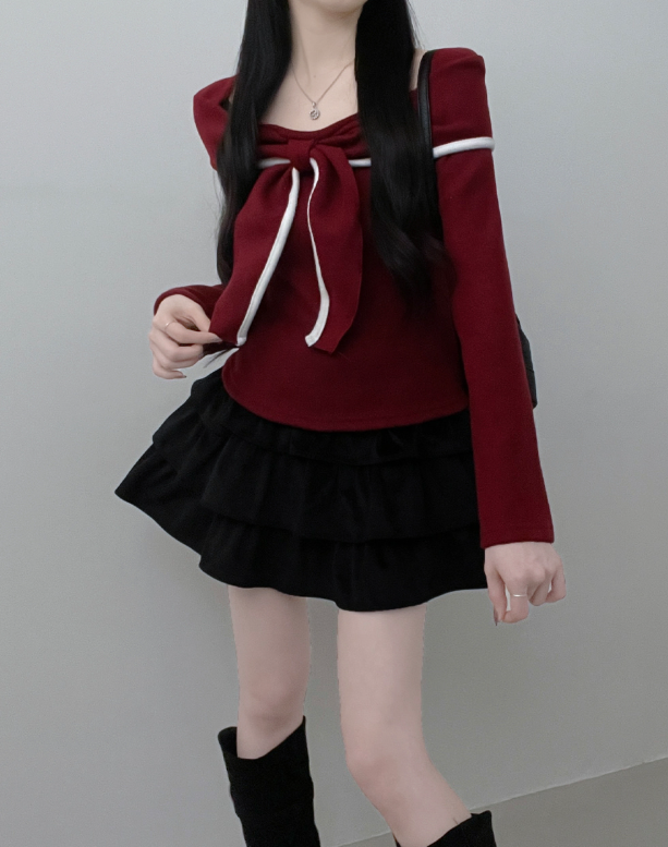 (•‾⌣‾•)蝴蝶結設計溫柔大方❤️一字肩款式可以適當漏出鎖骨更顯瘦💕