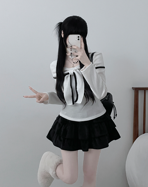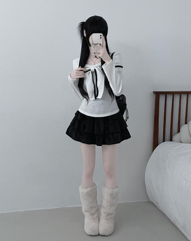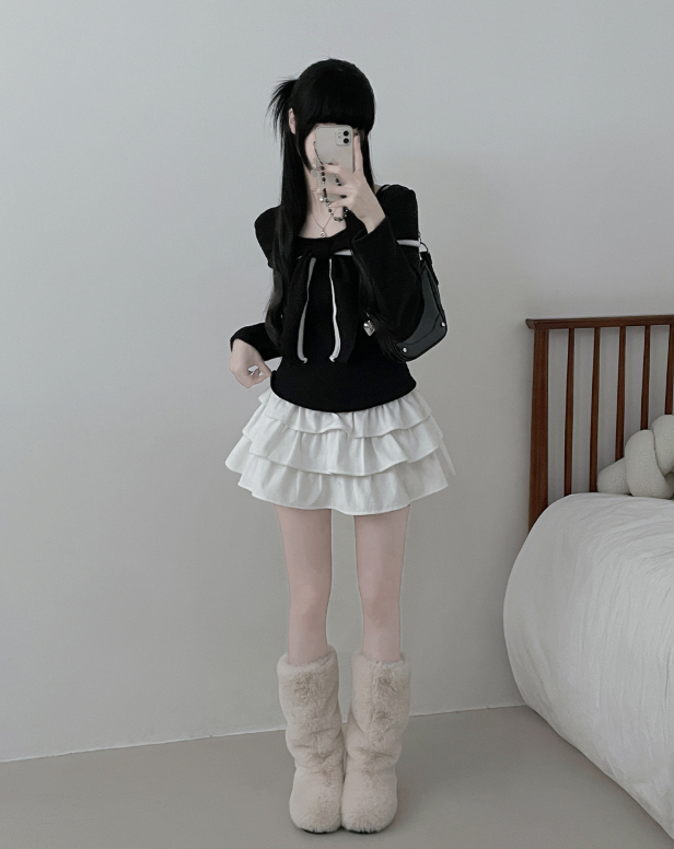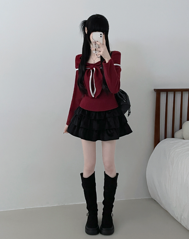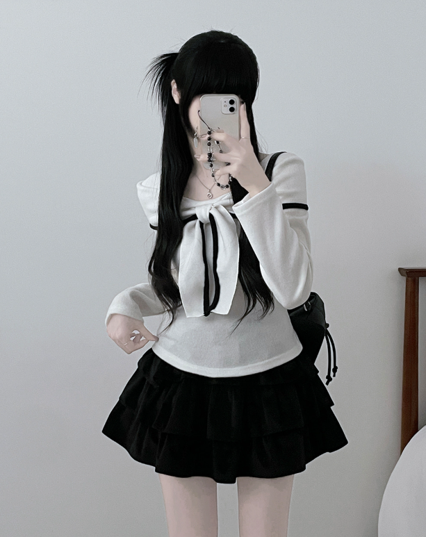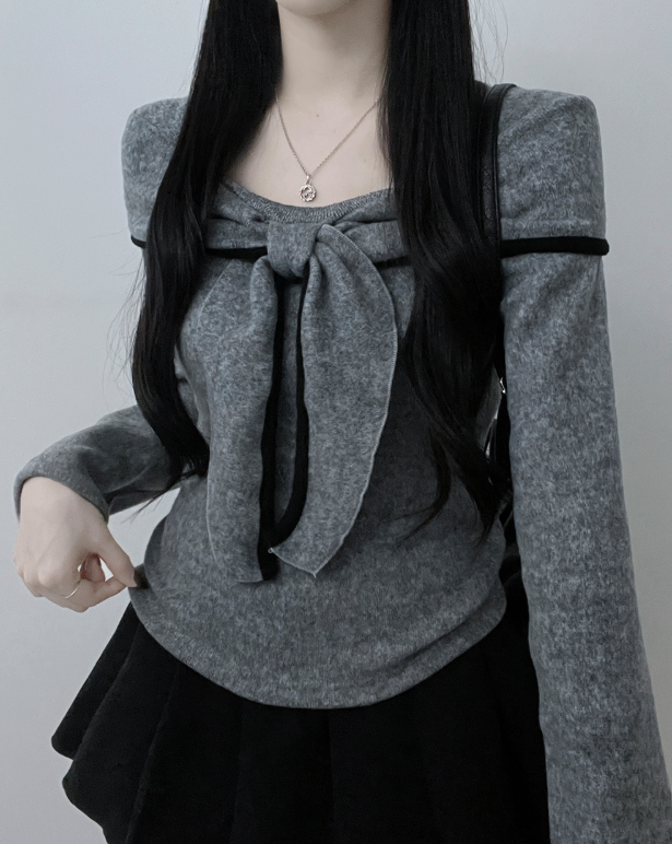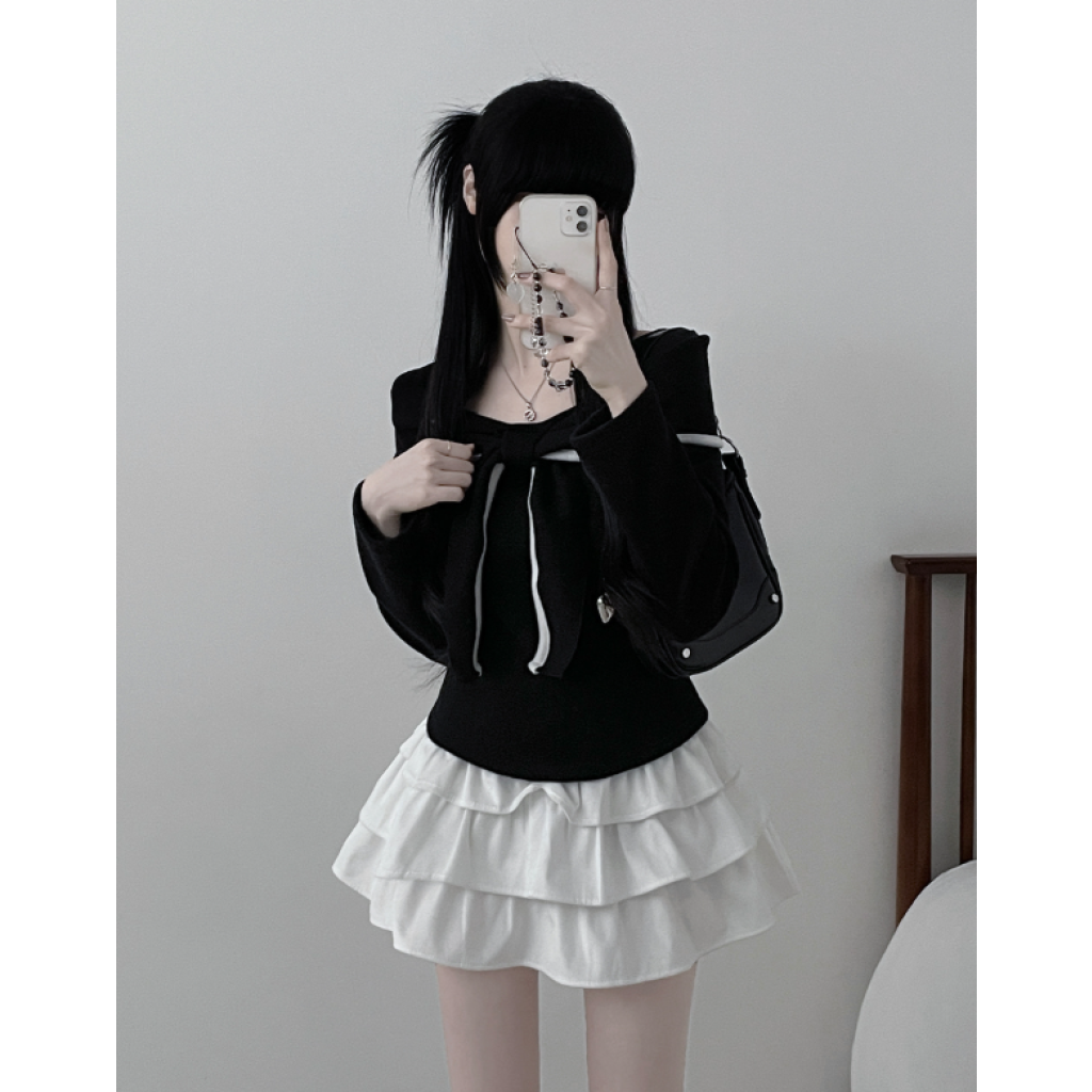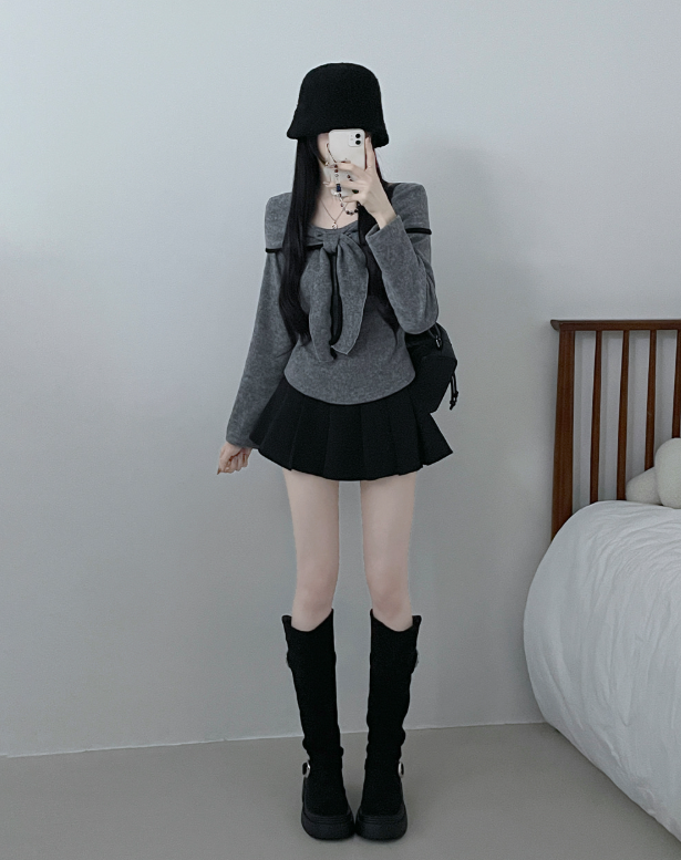 (•‾⌣‾•)蝴蝶結設計溫柔大方❤️一字肩款式可以適當漏出鎖骨更顯瘦💕
