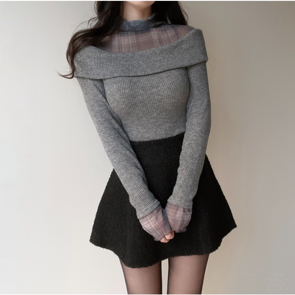 半高領假兩件針織長袖【2色入】 Copy