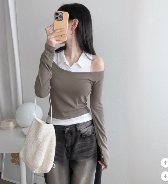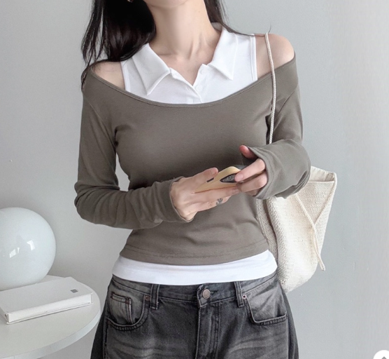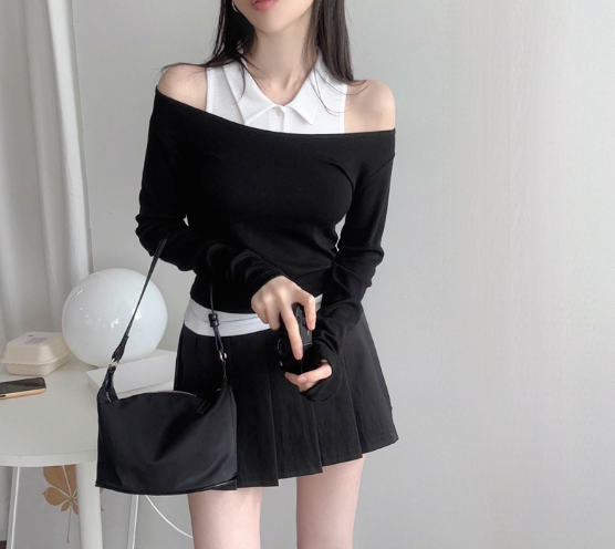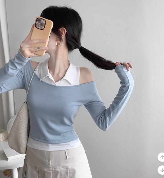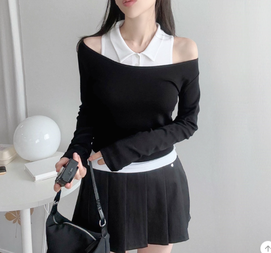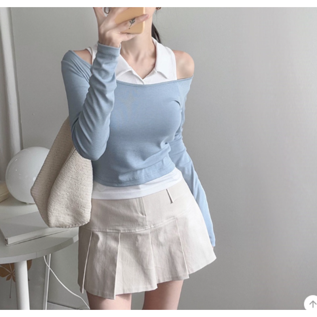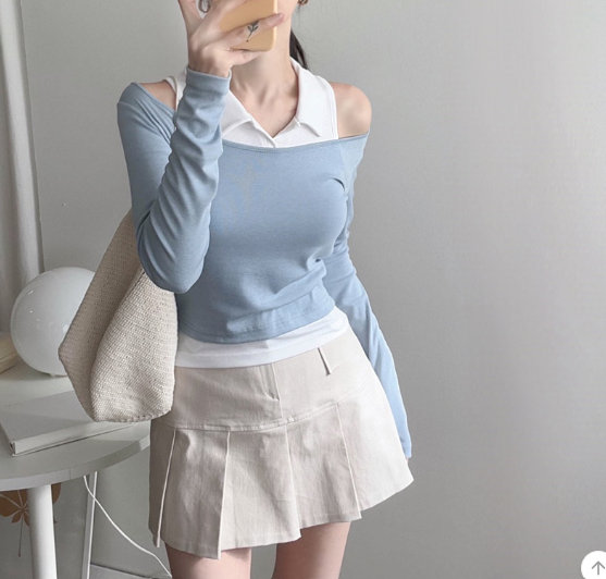 反領背心配長袖T恤【5色入】