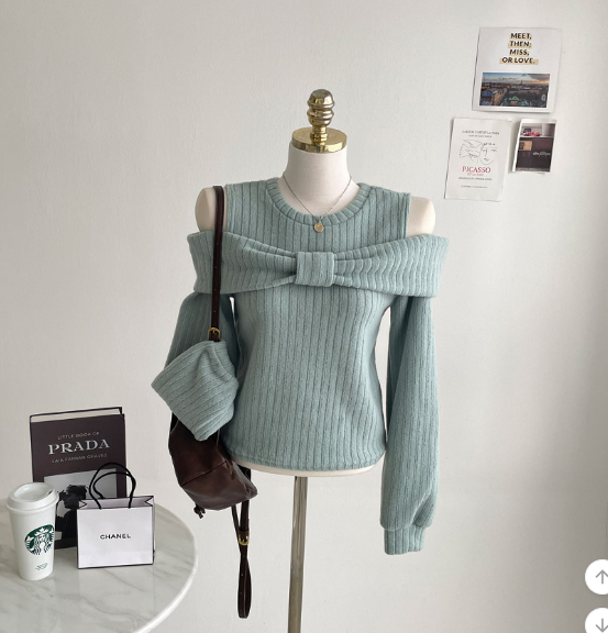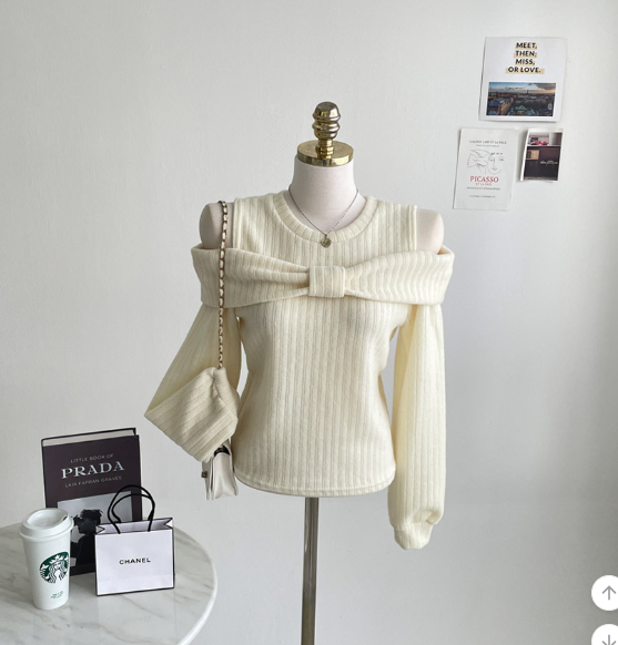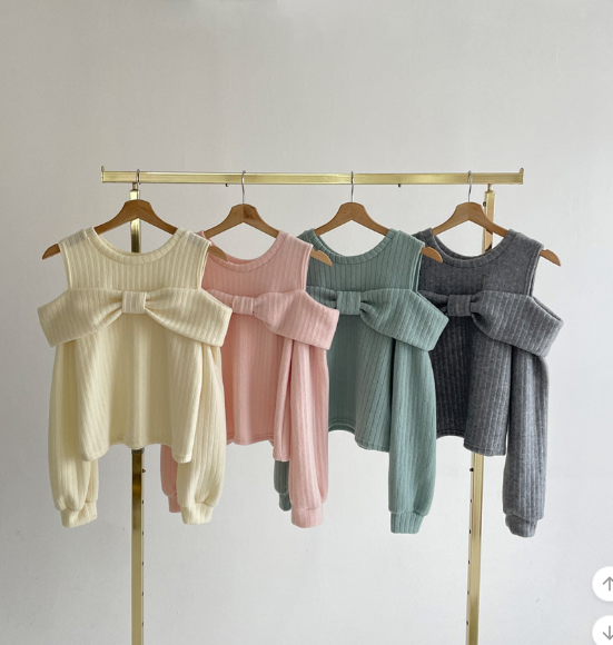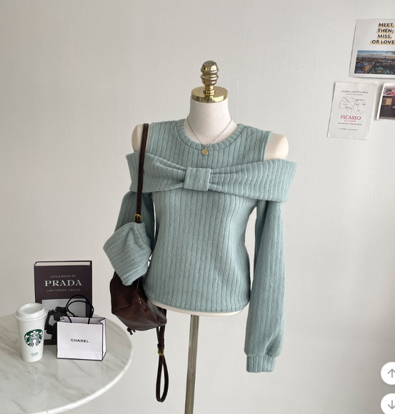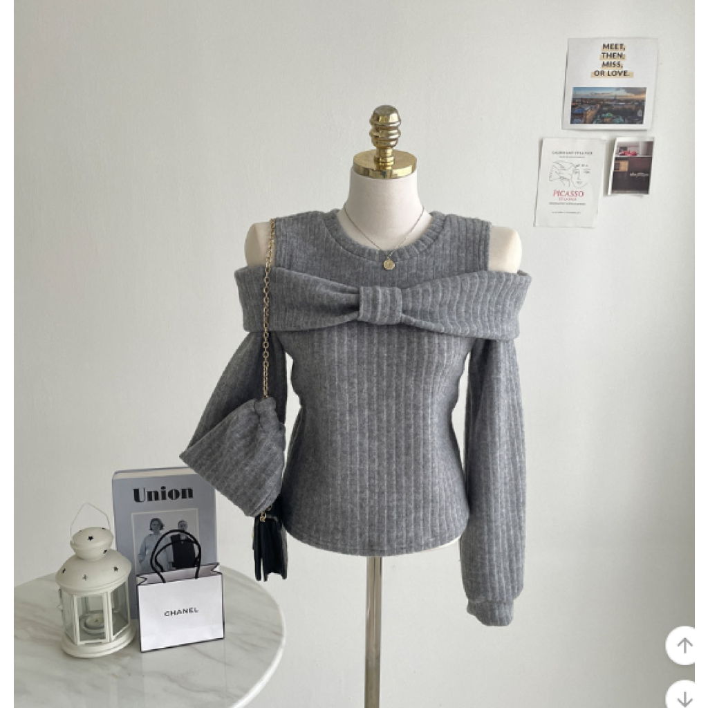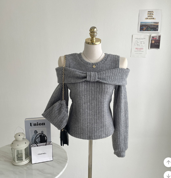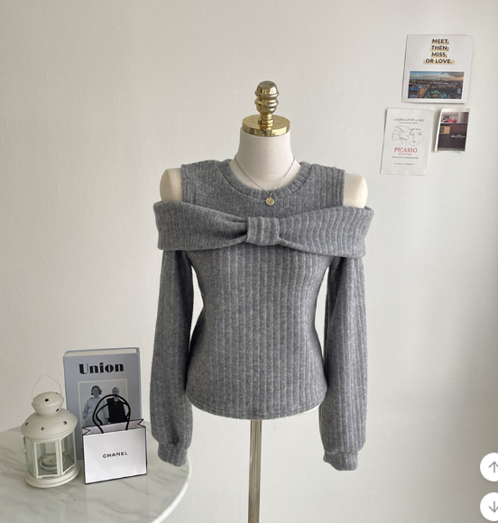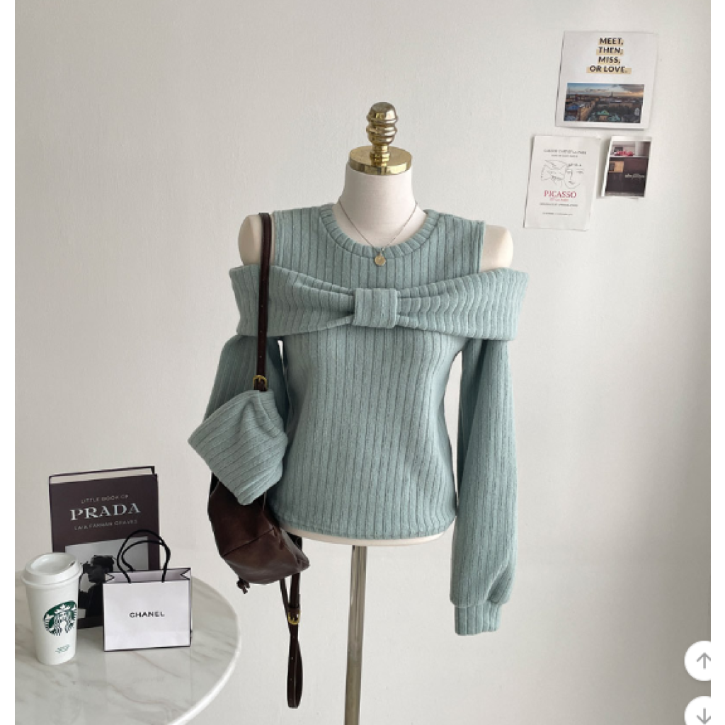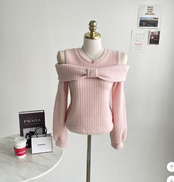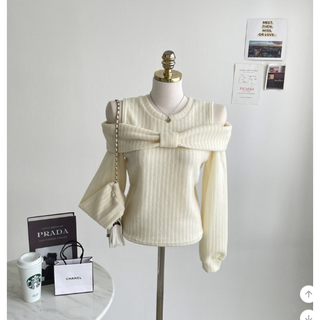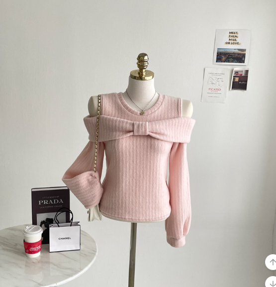 (•‾⌣‾•)溫柔配色既絨面上衣💕蝴蝶結設計好適合一字肩款式❤️