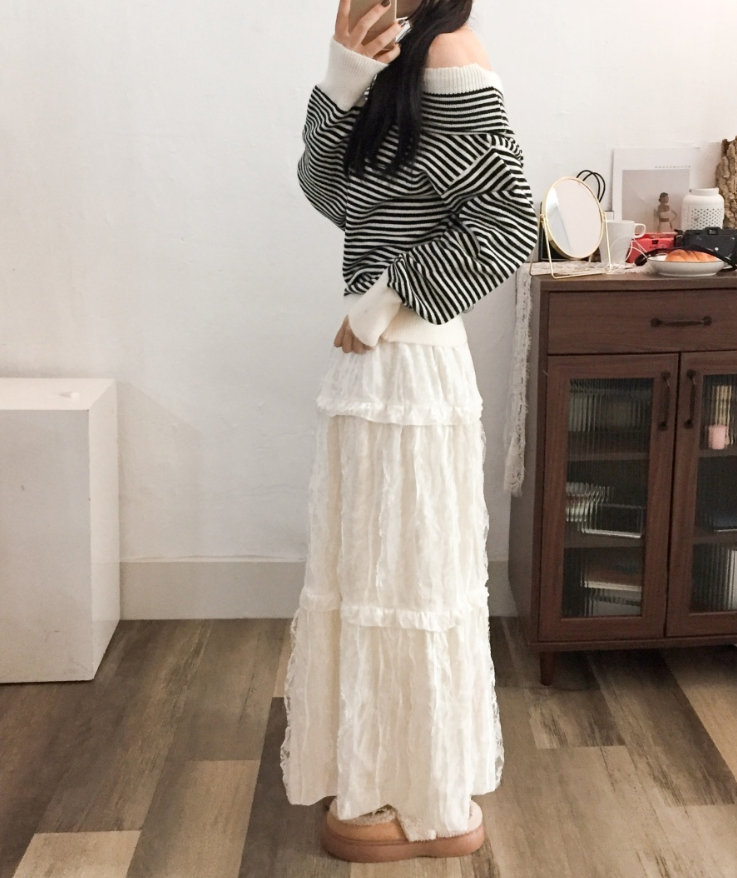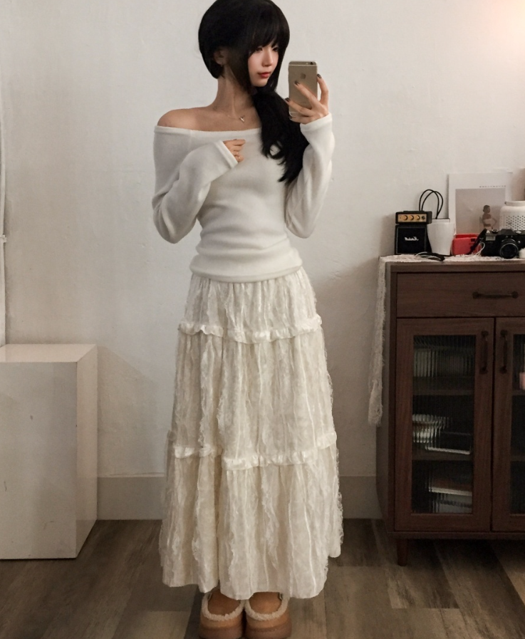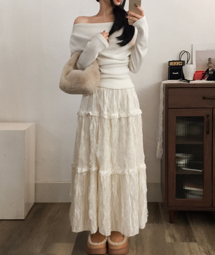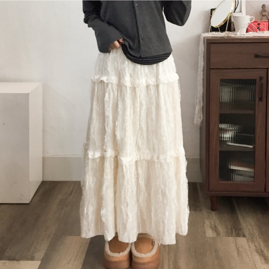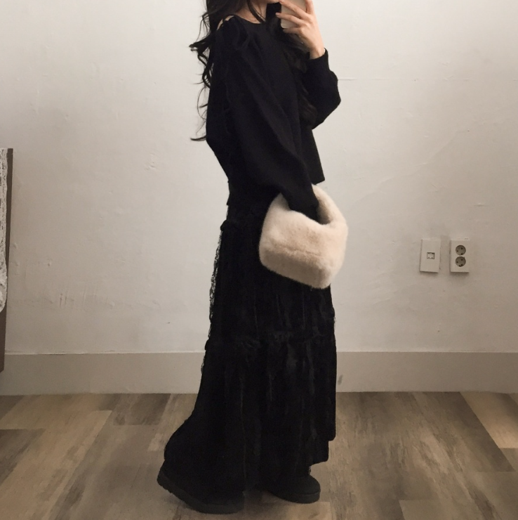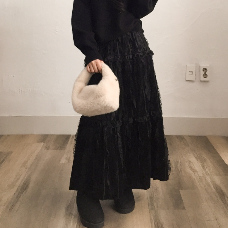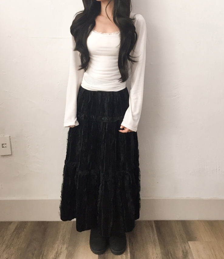天鵝絨蕾絲長裙【2色入】