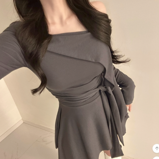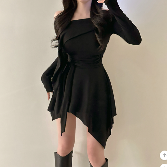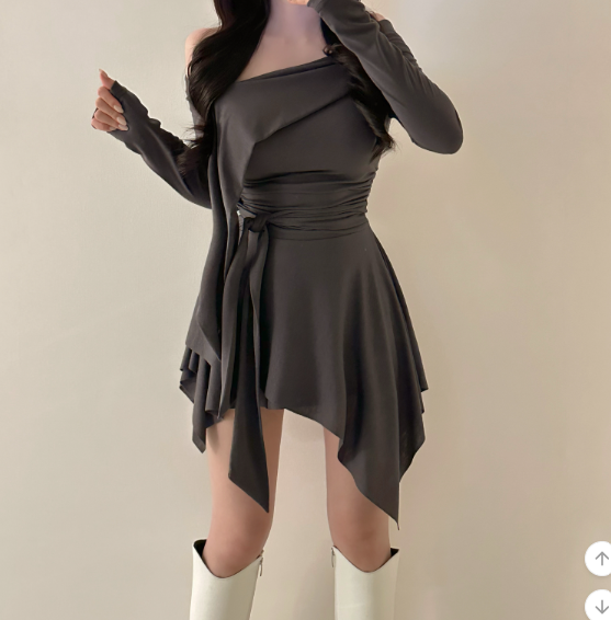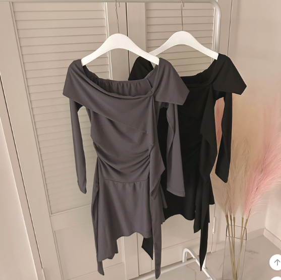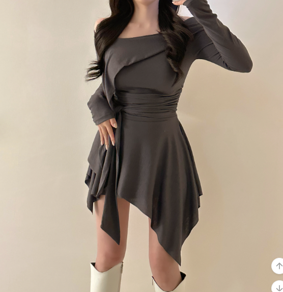 (๑´ㅂ`๑)不對稱露肩連身裙💕低調配色唔會太誇張❤️