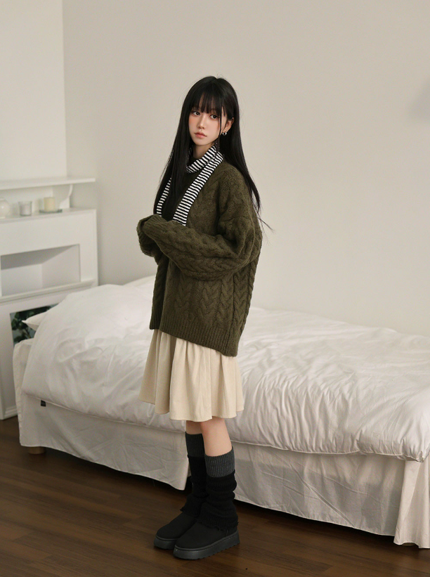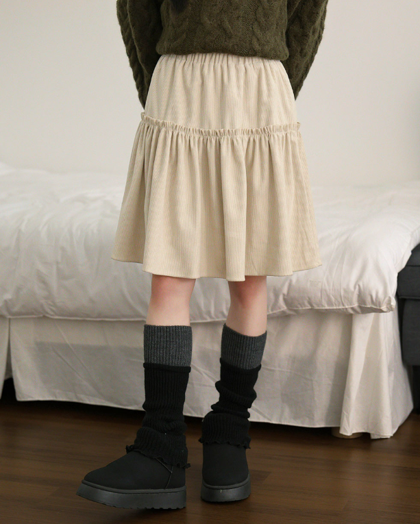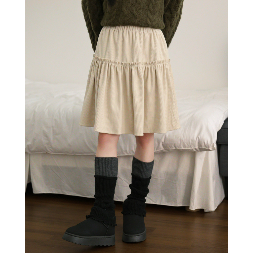 荷葉邊燈芯絨半身裙【3色入】