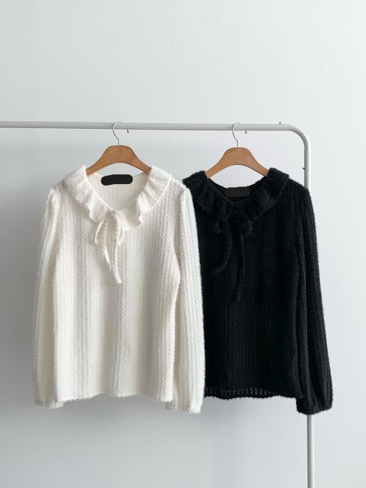 (•‾⌣‾•)荷葉邊領既襯衫💕窩夫紋加上毛毛設計好溫柔❤️