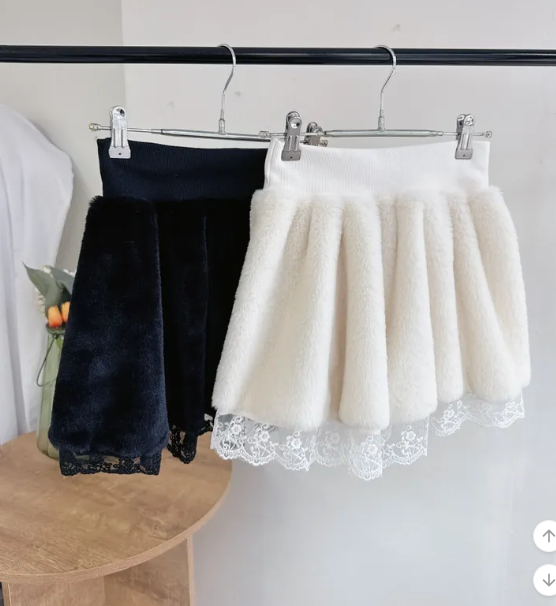 橡筋腰毛毛蕾絲半身裙【2色入】