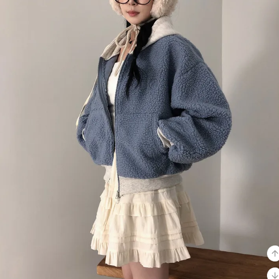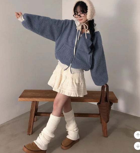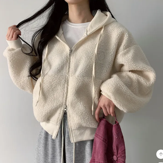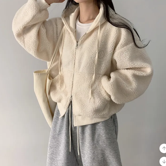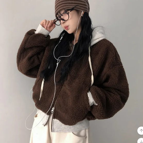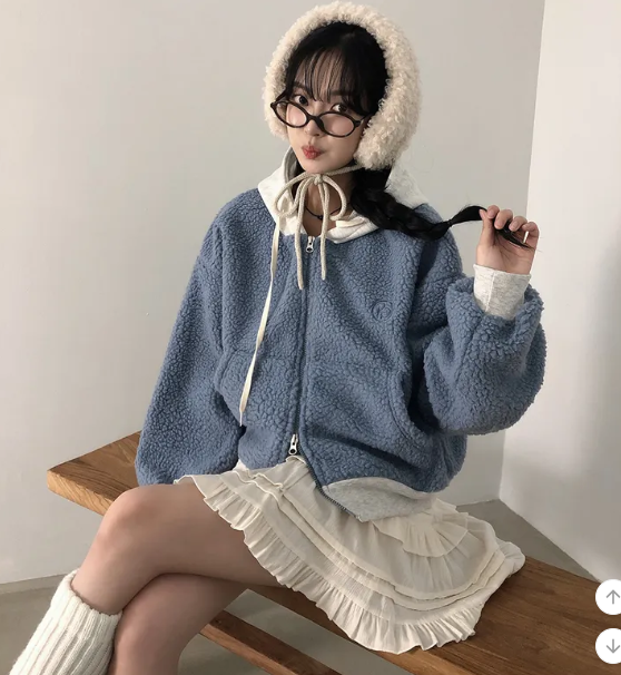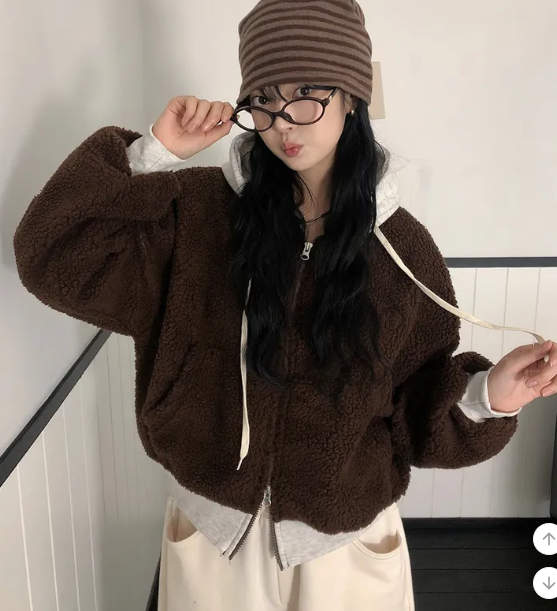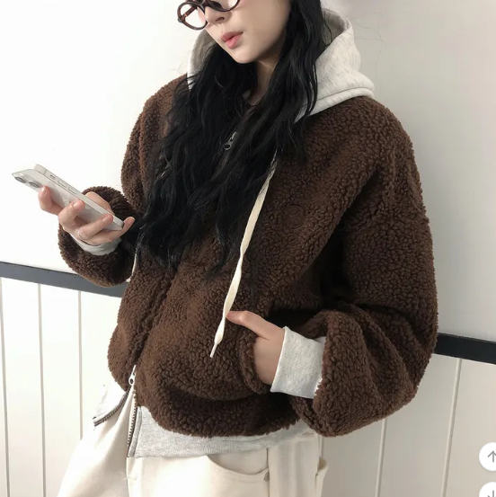 (•‾⌣‾•)連帽毛毛撞色外套💕簡單著一件外套已經好保暖❤️
