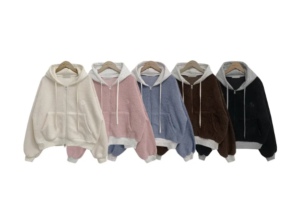 撞色抓絨刺繡雙向連帽外套【4色入】
