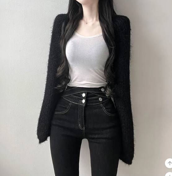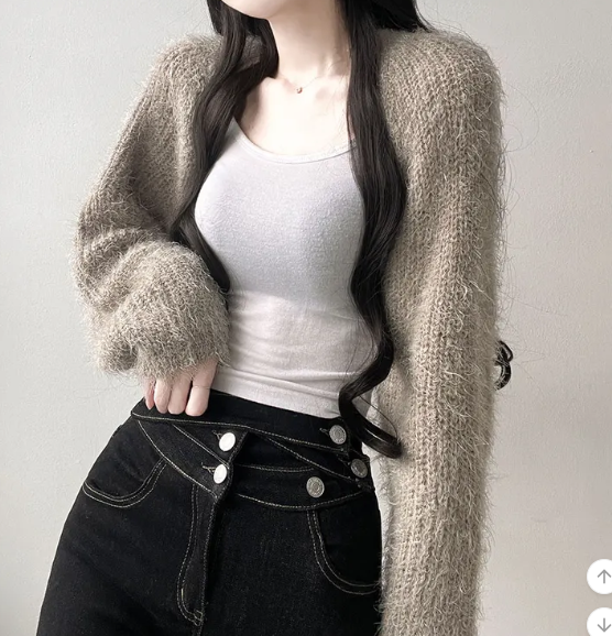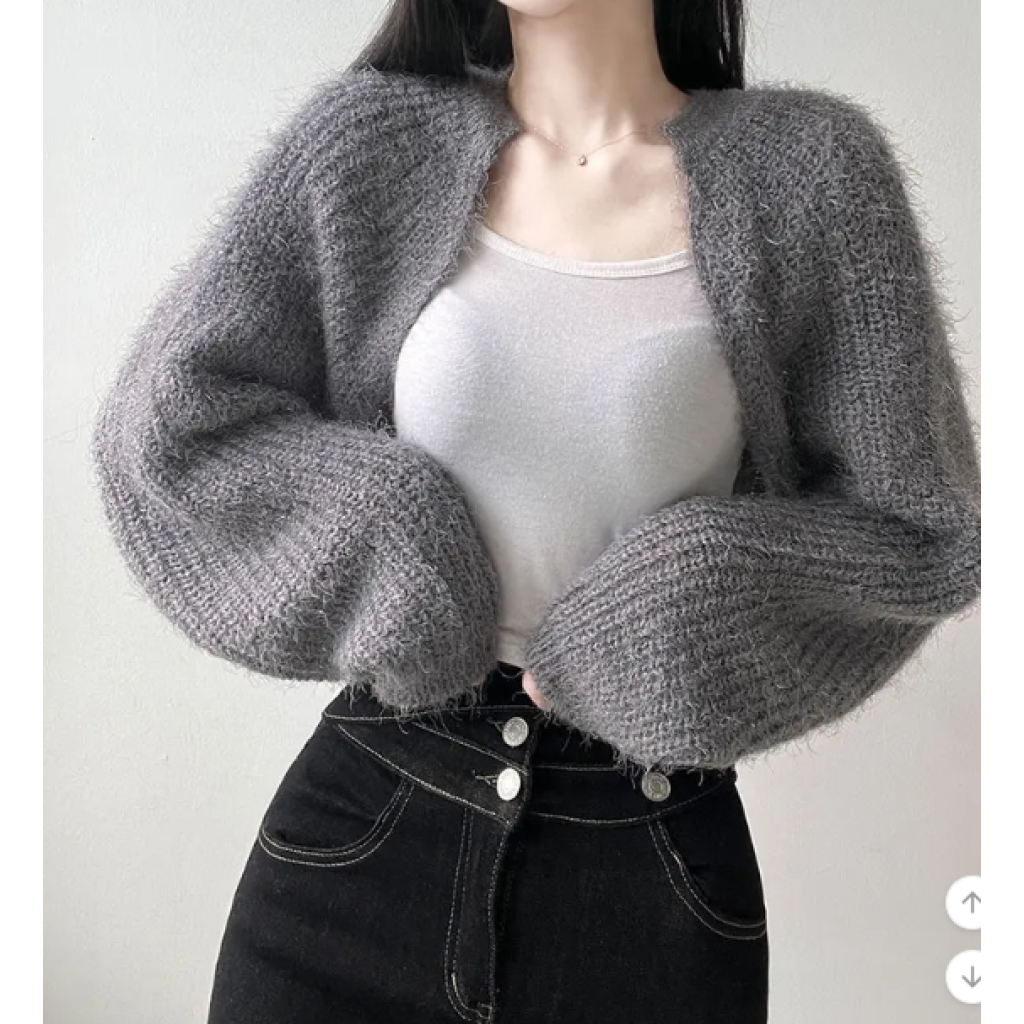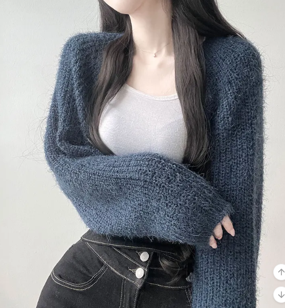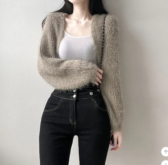 (•‾⌣‾•)短版針織外套💕可以拉高身材比例更顯瘦❤️