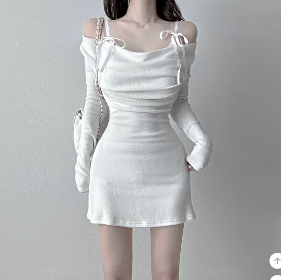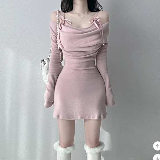 (๑´ㅂ`๑)絲帶絨面褶皺連身裙💕節日氣氛濃厚既裙款出街約會最適合❤️