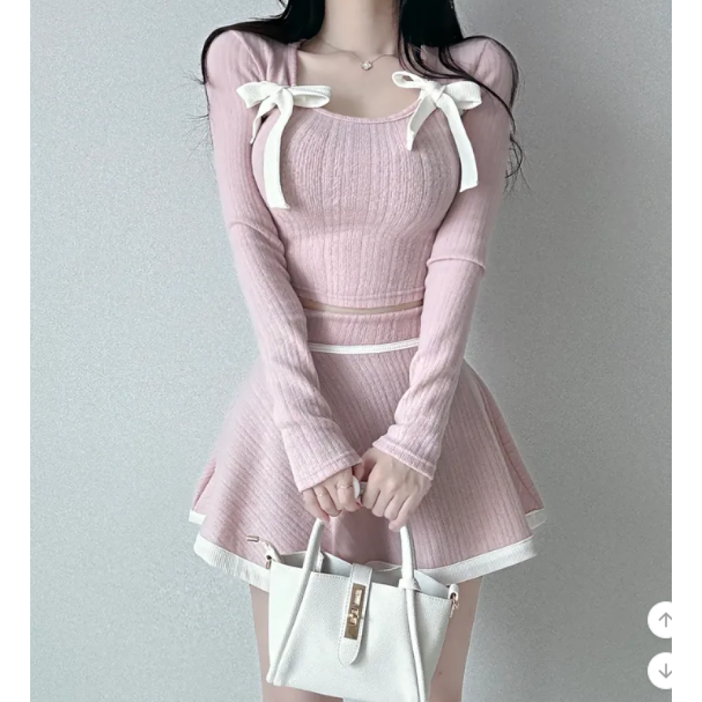 蝴蝶結喇叭裙兩件套【2色入】