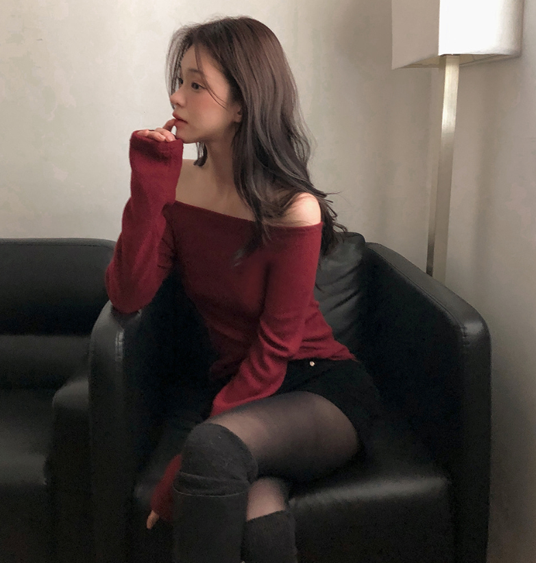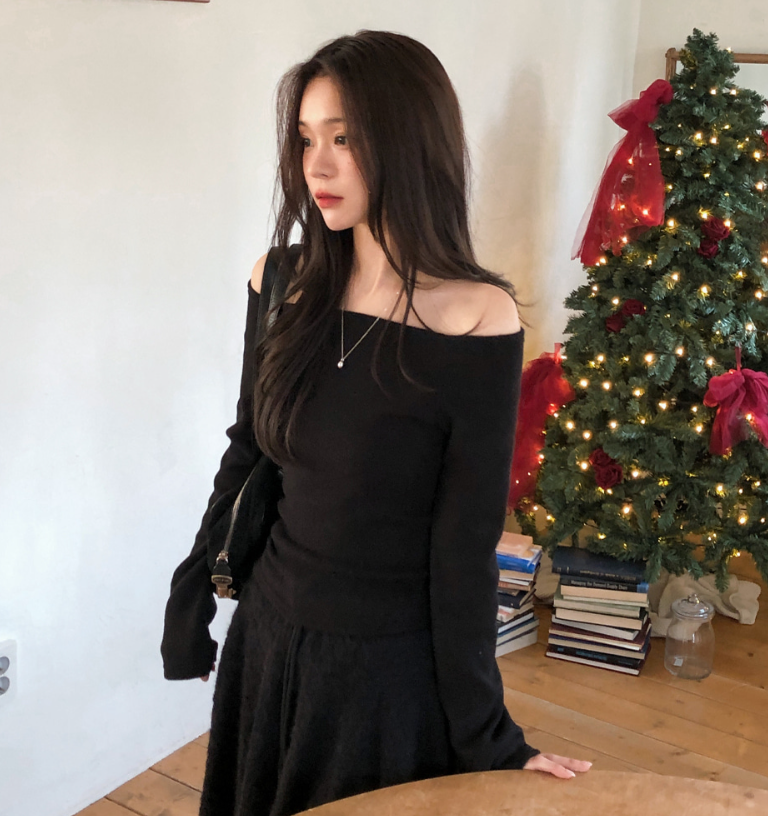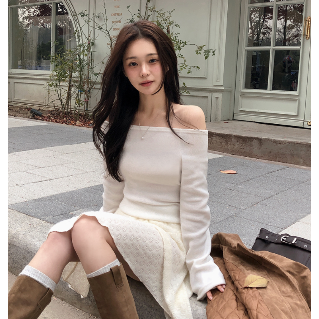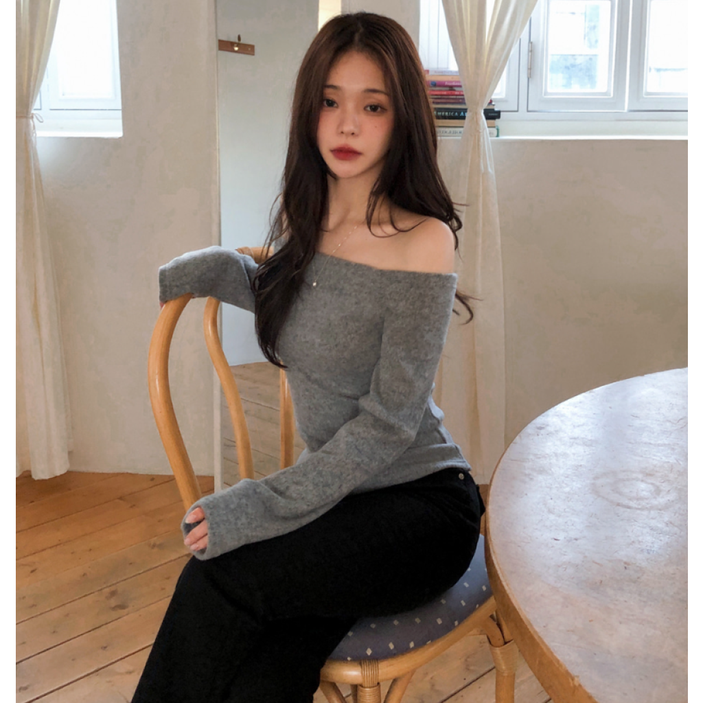 (•‾⌣‾•)抓絨面好保暖💕一字肩設計凸顯鎖骨好顯瘦❤️