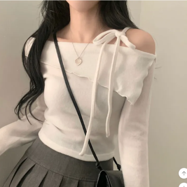 寬鬆單肩側釦長袖針織衫【3色入】 - 現貨